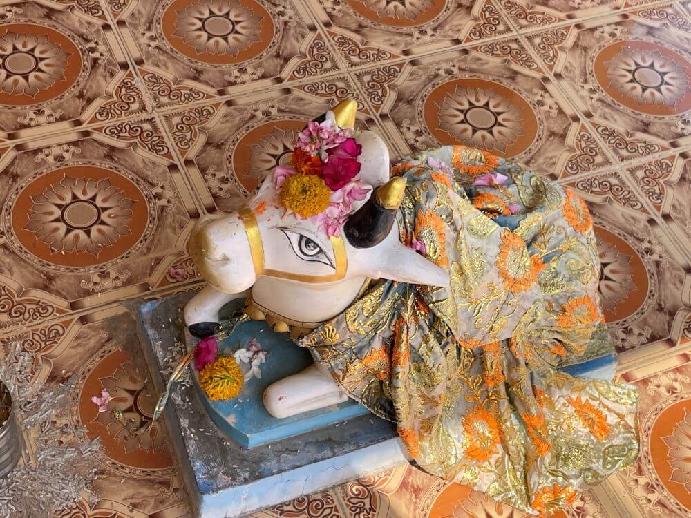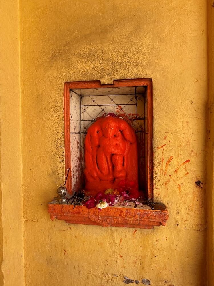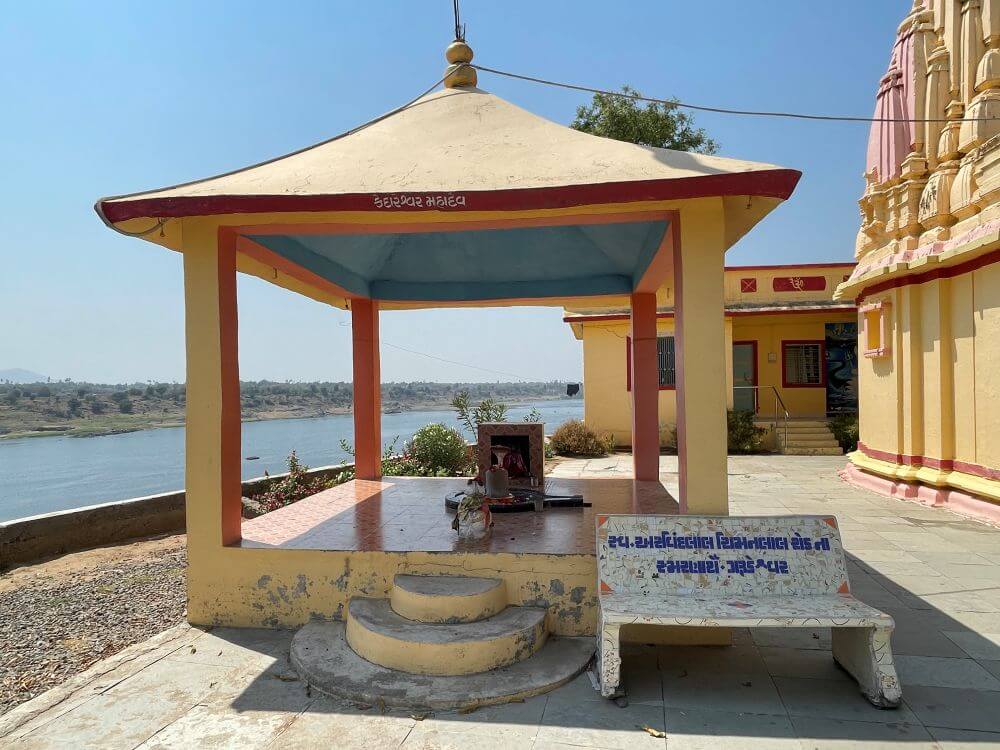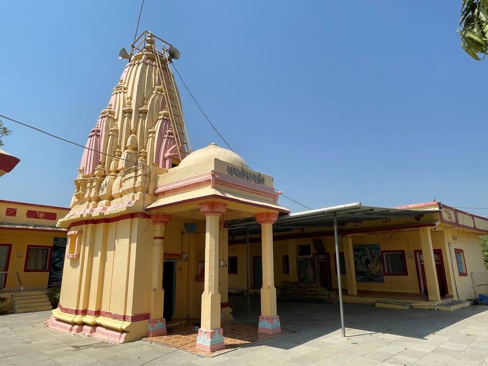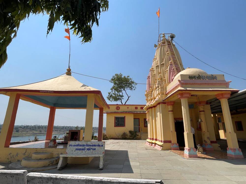 A pathway leads from the temple towards the Narmada riverbank. From the entrance, an ascending path with railings on both sides leads visitors toward a spacious courtyard, creating a serene atmosphere amidst natural surroundings. From here, one can also view the Narmada River. The temple courtyard also houses the shrine of Baliyadev.