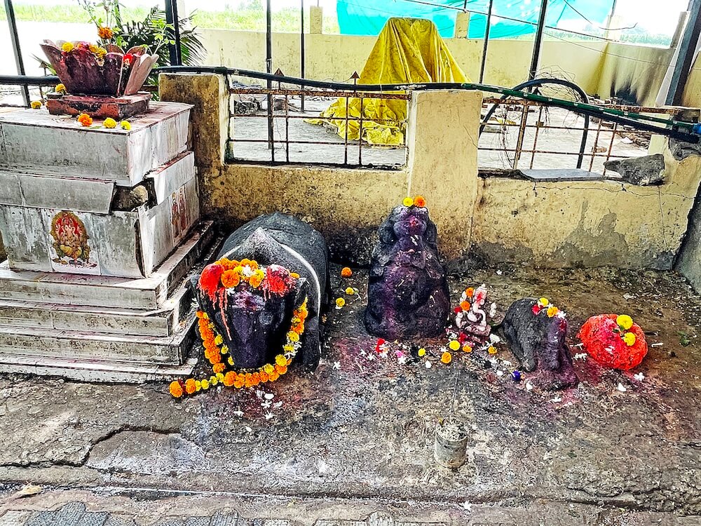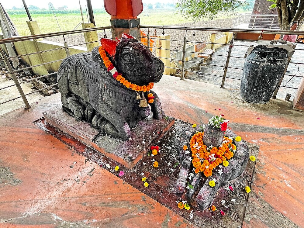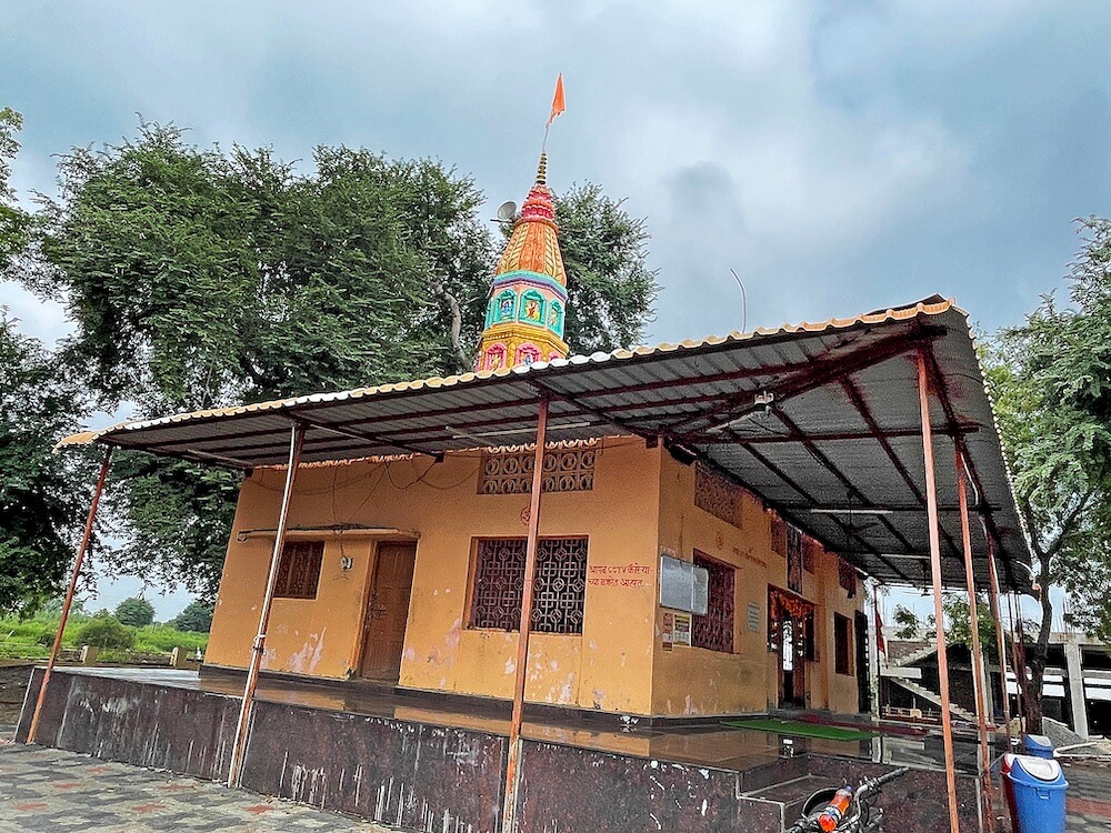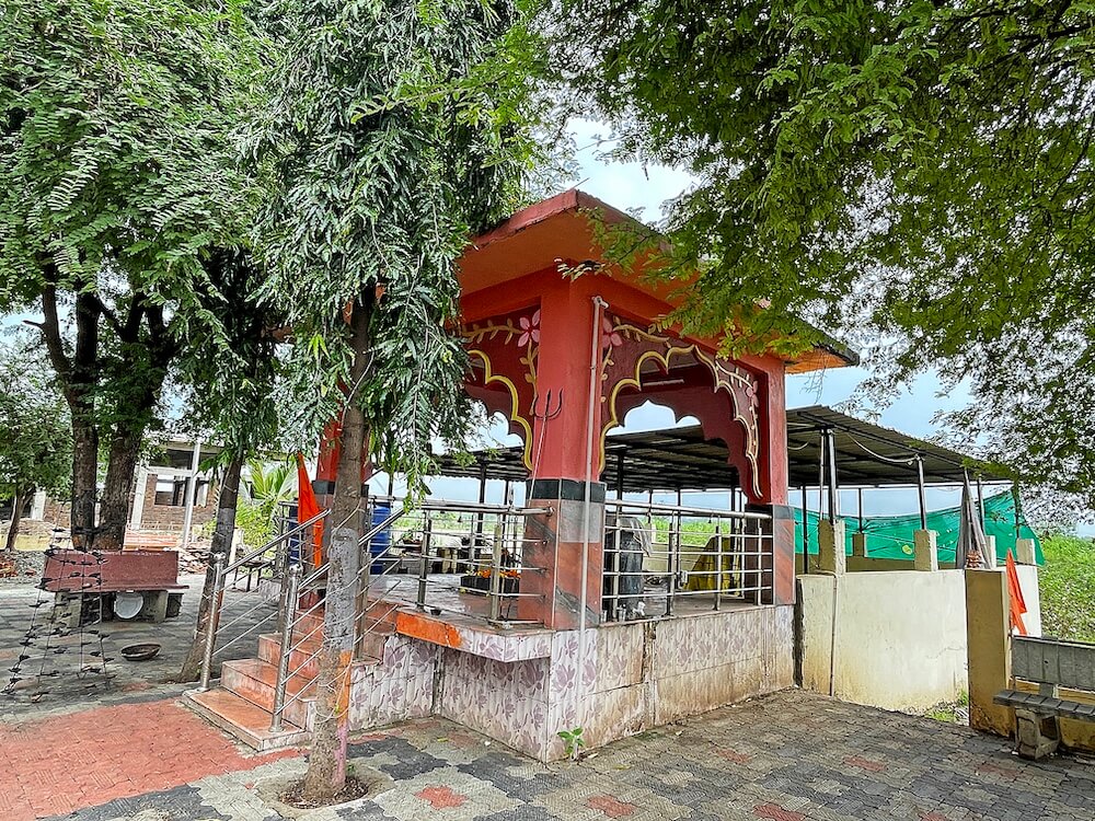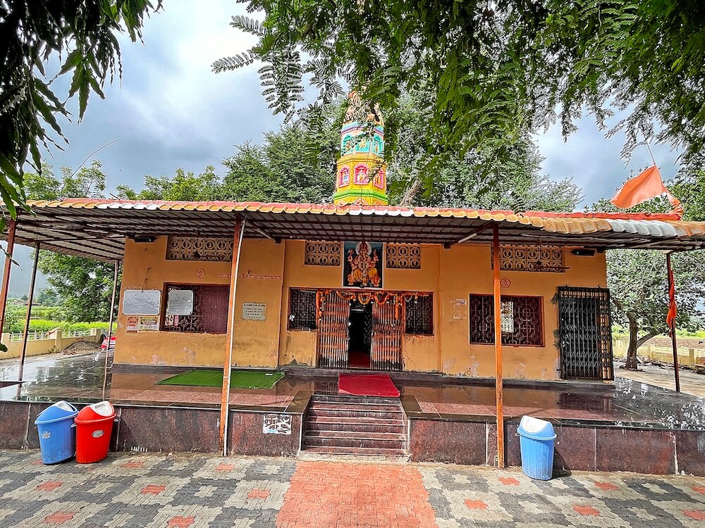 गावापासून सुमारे एक किलोमीटर अंतरावर असलेल्या या मंदिरापर्यंत पक्की सडक आहे. मंदिरास तटबंदी व तटबंदीत स्वागत कमान आहे. दोन्ही बाजूला दोन चौकोनी स्तंभ व त्यावर महिरपी कमान, असे तिचे स्वरूप आहे. पुढे मंदिराच्या फरसबंदी प्रांगणात भाविकांना बसण्यासाठी आसन व्यवस्था आहे. प्रांगणात काही प्राचीन महावृक्ष आहेत. प्रांगणात मंदिरासमोर नंदीमंडप आहे. प्रांगणापेक्षा सुमारे तीन फूट उंचावर असलेल्या नंदीमंडपास पाच पायऱ्या आहेत. पायऱ्यांच्या दोन्ही बाजूस व नंदीमंडपास चारही बाजूंनी स्टेनलेस स्टीलचे सुरक्षा कठडे आहेत. नंदीमंडपात चारही बाजूला चार चौकोनी स्तंभ आहेत. सर्व स्तंभ एकमेकांना महिरपी कमानीने जोडलेले आहेत. नंदीमंडपात मध्यभागी वज्रपीठावर अखंड काळ्या पाषाणातील नंदीची मूर्ती आहे. या नंदीसमोर शिवपिंडी आहे. या मंडपाच्या वितानावर कमळदल नक्षीचे चक्र आहे.