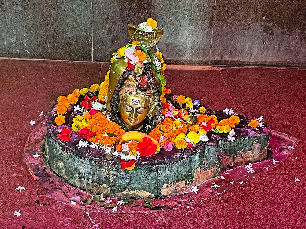 पुढे प्राचीन हेमाडपंती शैलीचे बांधकाम असलेल्या गर्भगृहाचे प्रवेशद्वार आहे. प्रवेशद्वाराच्या लाकडी झडपा नक्षीदार आहेत. गर्भगृहात मध्यभागी जमिनीतून वर आलेली स्वयंभू शिवपिंडी आहे. शिवपिंडीवर महादेवाचा पितळी मुखवटा आहे. पिंडीभोवती वेटोळे घातलेला पितळी नाग आहे. पिंडीवर जलधार धरलेले अभिषेकपात्र छताला टांगलेले आहे. मंदिराच्या छतावर तीन थरांचे अष्टकोनी शिखर आहे. शिखराच्या प्रत्येक थरात आठ देवकोष्ठके आहेत. त्यांत महादेव व अन्य देवी-देवतांच्या विविध रूपातील मूर्ती आहेत. प्रत्येक देवकोष्ठकाच्या दोन्ही बाजूस नक्षीदार वामनस्तंभ व त्यावर महिरपी कमानी आहेत. शिखरात शीर्षभागी कमळफुलाची प्रतिकृती, त्यावर आमलक व कळस आहे.