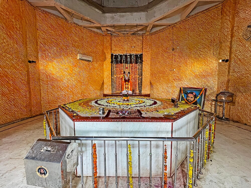 सभामंडपाच्या पुढील बाजूस प्रदक्षिणा मार्ग सोडून गर्भगृहाची रचना आहे. या गर्भगृहात प्रवेशासाठी तीन दरवाजे आहेत. गर्भगृहाच्या मुख्य प्रवेशद्वारावरील लाकडी द्वारशाखांवर कोरीव नक्षीकाम व ललाटबिंबाच्या वरील बाजूस मुंगसाजी महाराजांची प्रतिमा आहे. गर्भगृहात मध्यभागी षटकोनी आकारात पुंडलिक महाराजांचे समाधी स्थान आणि त्यावर त्यांच्या पादुका आहेत. या संगमरवरी समाधीच्या मागील बाजूस असलेल्या वज्रपिठावर पुंडलिक महाराजांची मोठी संगमरवरी मूर्ती आहे. मंदिराच्या मुखमंडपाच्या दोन्ही बाजूला दोन लहान शिखरे व गर्भगृहावर उंच नक्षीदार शिखर आहे. या शिखराच्या शिरोभागी दोन आमलक व कळस आहेत.