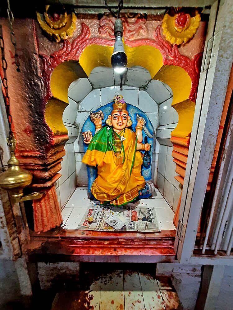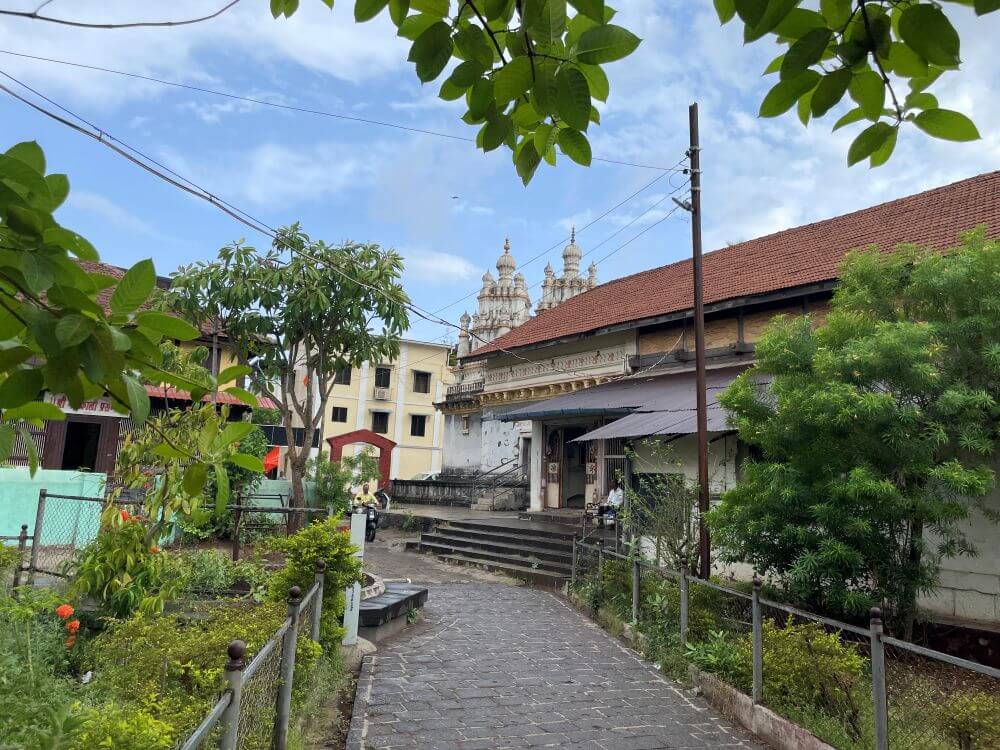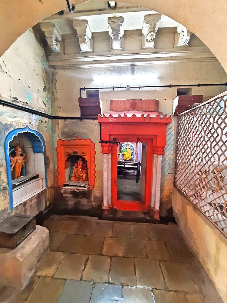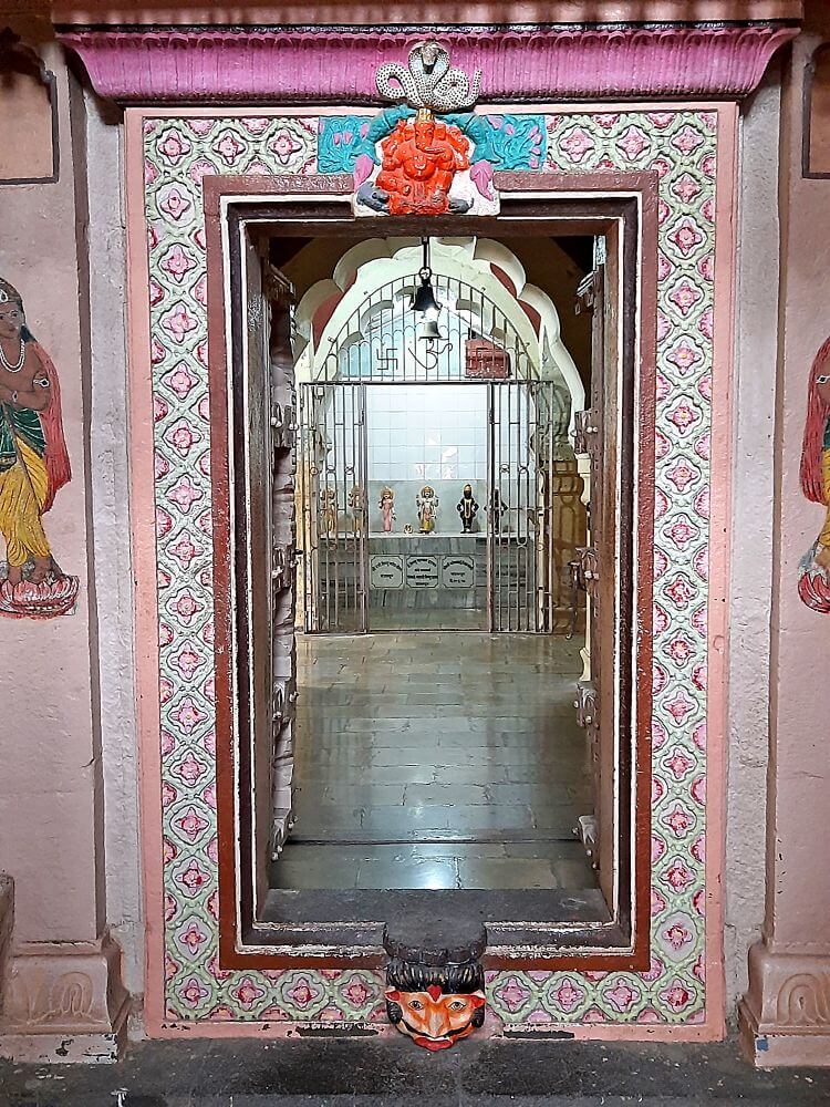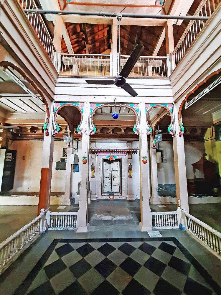 नंतरच्या काळात बांधलेला सभामंडप प्रशस्त व दुमजली आहे. या सभामंडपात शंभर वर्षांहून जुनी काचेची विविधरंगी झुंबरे आहेत. सभामंडपातून मुख्य मंदिरात प्रवेश होतो. येथे मंदिराच्या बांधकामाचा काळ सांगणारा एक जीर्ण शिलालेख आहे.