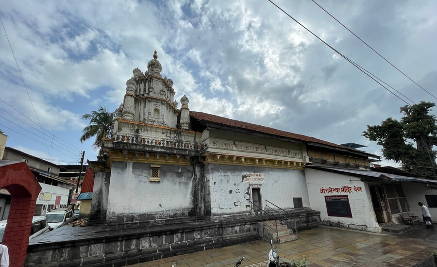 ‘गणेश मूर्तींचे माहेरघर’ म्हणून सध्या प्रसिद्ध असलेल्या पेण शहरातील देऊळवाडा परिसरात चालुक्यकालीन स्थापत्यशैलीतील रामेश्वर मंदिर आहे. असे सांगितले जाते की चालुक्य राजवटीत त्याची निर्मिती झाली. या मंदिरात प्राचीनत्वाच्या खुणा जागोजागी जाणवतात. मंदिराबाहेर दगडी दीपस्तंभ आहे. एका मोठ्या पाषाणी जोत्यावर हे दक्षिणाभिमुख मंदिर उभे आहे. मंदिराच्या बांधकामात दगड व लाकडांचा वापर केलेला आहे. मूळ मंदिरासमोर