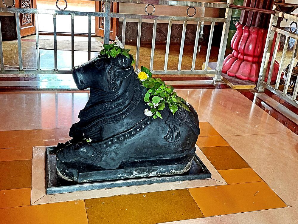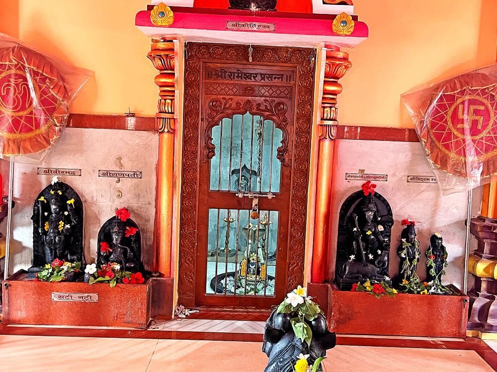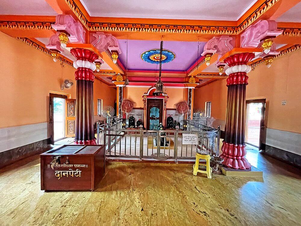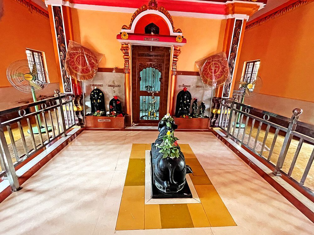 अंतराळात एका बाजूला लाकडी पालखी आहे. अंतराळात प्रदक्षिणा मार्ग सोडून गर्भगृह आहे. गर्भगृहासमोरील भाग हा स्टीलचे गज लावून बंदिस्त केलेला आहे. त्यात काळ्या पाषाणातील नंदीची मूर्ती आहे. गर्भगृहातील दर्शनी भिंतीवर डाव्या बाजूला महिषासुरमर्दिनी रूपातील काळंबा देवी व विठ्ठल-रखुमाई आणि उजव्या बाजूस गणपती व वीरभद्र यांच्या काळ्या पाषाणातील मूर्ती आहेत. गर्भगृहाच्या मध्यभागी अखंड काळ्या पाषाणातील शिवपिंडी आहे.