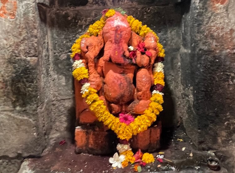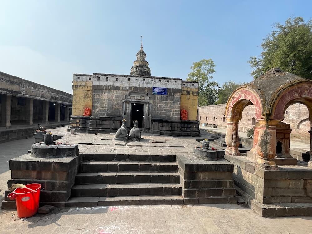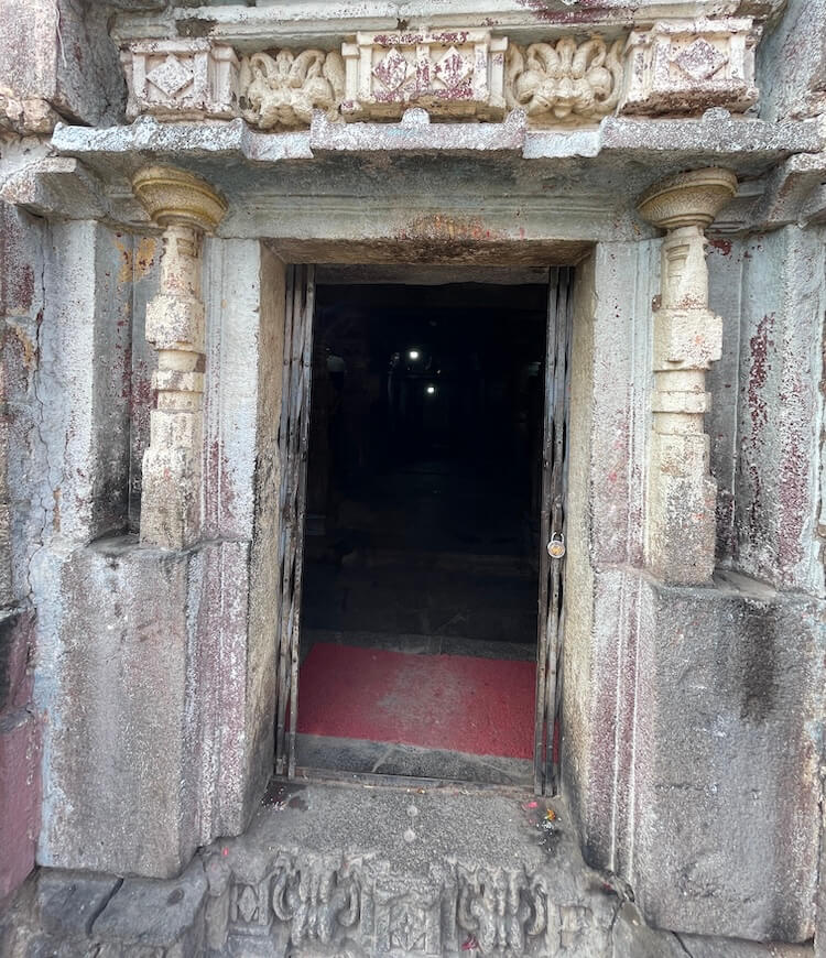 मंदिराच्या प्रवेशद्वाराच्या दोन्ही बाजूंकडील भिंतींवर गणेशाच्या शेंदूरचर्चित मूर्ती आहेत. प्रवेशद्वाराच्या द्वारस्तंभांवर तसेच द्वारपट्टीवर नक्षीदार कलाकुसर आहे. प्रवेशद्वाराच्या पायथ्याशी दोन्ही बाजूंना कीर्तिमुखे कोरलेली आहेत. सभामंडपात मध्यभागी चार दगडी स्तंभ आहेत.