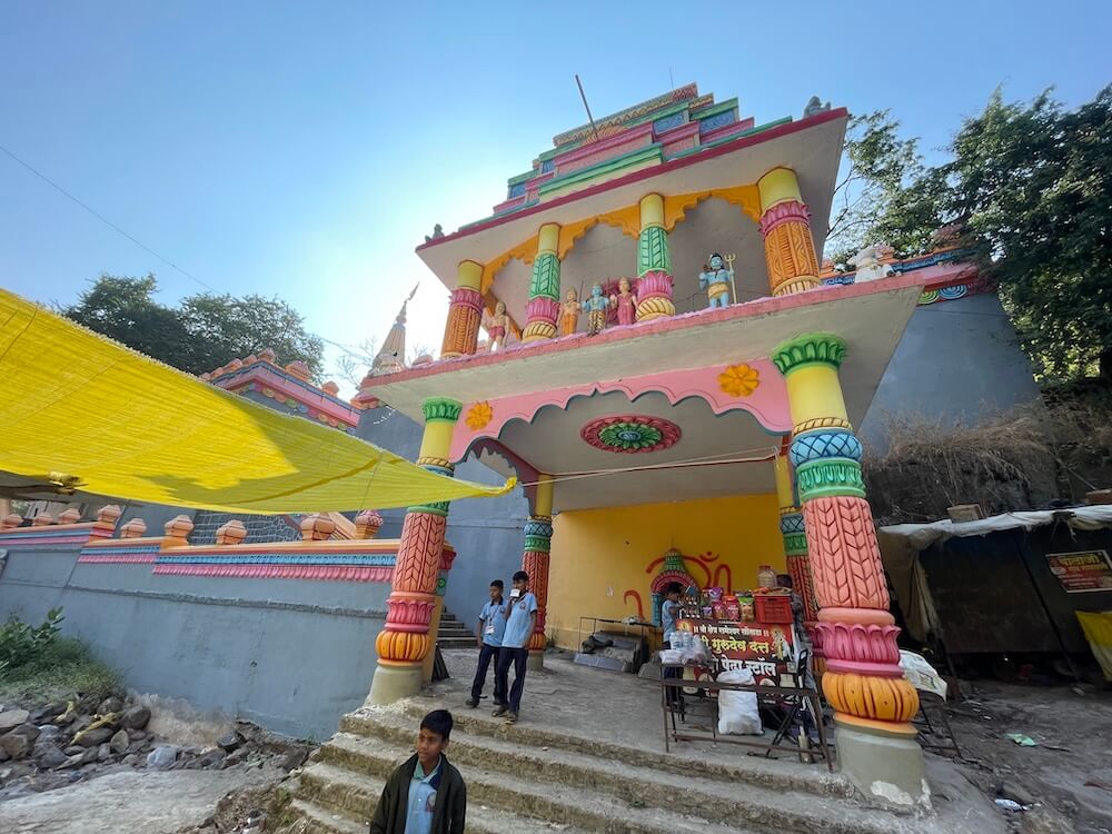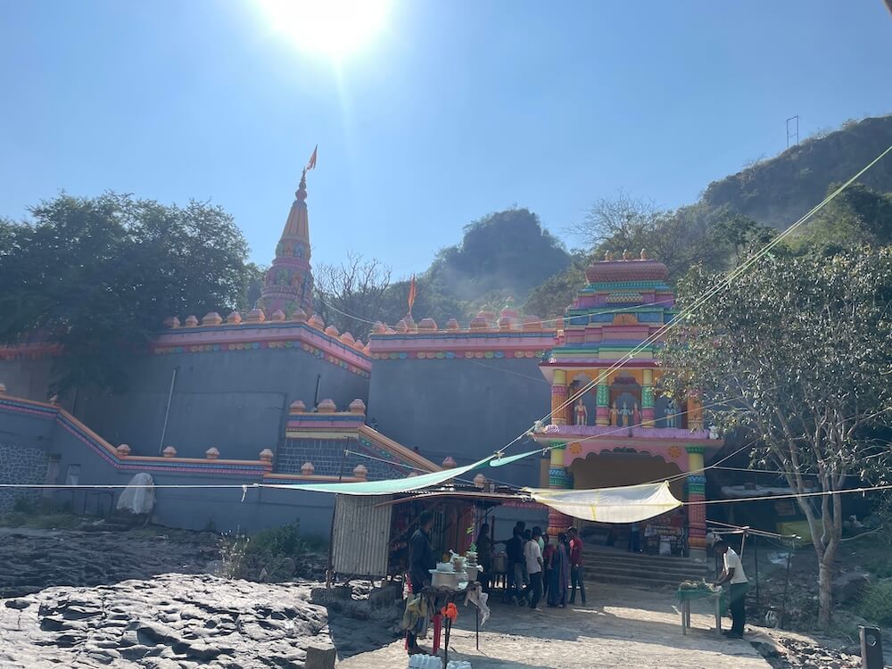 हे मंदिर सौताडा गावापासून सुमारे दोन किलोमीटर अंतरावरील डोंगराच्या कुशीत वसलेले आहे. गावापासून मंदिराच्या वाहनतळापर्यंत येण्यासाठी उत्तम रस्ता आहे. वनराईने वेढलेल्या या परिसरातील वाहनतळालगत खाद्यपदार्थ व पूजासाहित्याची दुकाने आहेत. तेथून मंदिरापर्यंत उतरून जाण्यासाठी कोरीव पाषाणात बांधलेल्या सुमारे ३५० पायऱ्या आहेत. पायरीमार्गाच्या एका बाजूला डोंगरकड्याचा कठडा आहे, तर दुसऱ्या बाजूला पाषाणी सुरक्षा कठडा आहे. पायरीमार्गावरून मंदिराकडे जाताना डाव्या बाजूला सौताडा धबधब्याचे सुंदर दर्शन होते. पायरीमार्गावरून खाली उतरताच विंचरणा नदीच्या पात्रावर बांधलेल्या दगडी पूल पार करून पुढे मंदिराकडे जाता येते. मंदिरास भक्कम व दुहेरी तटबंदी आहे. पहिल्या तटबंदीत दुमजली प्रवेशद्वार आहे. उंचावर असलेल्या या प्रवेशद्वारास पाच पायऱ्या आहेत. या प्रवेशद्वारास महिरपी कमानीने जोडलेले चार नक्षीदार गोलाकार स्तंभ आहेत व त्यावर छत आहे. वितानावर चक्रनक्षी कोरलेली आहे आणि छतावर दुसरा मजला आहे. वरील मजल्यावर समोरील बाजूला राम, लक्ष्मण आणि सीता यांच्या मूर्ती आहेत. तसेच डाव्या बाजूला मारुती व उजव्या बाजूला महादेवाची मूर्ती आहे. दुसऱ्या मजल्यावर आठ गोलाकार नक्षीदार स्तंभ आहेत. दुसऱ्या मजल्याच्या छतावर पिरॅमिडसारख्या उतरत्या पायऱ्यांची रचना असलेले शिखर आणि त्यावर कळस आहे. या प्रवेशद्वारातून पुढे सुमारे पन्नास पायऱ्या चढून दुसऱ्या तटबंदीतील