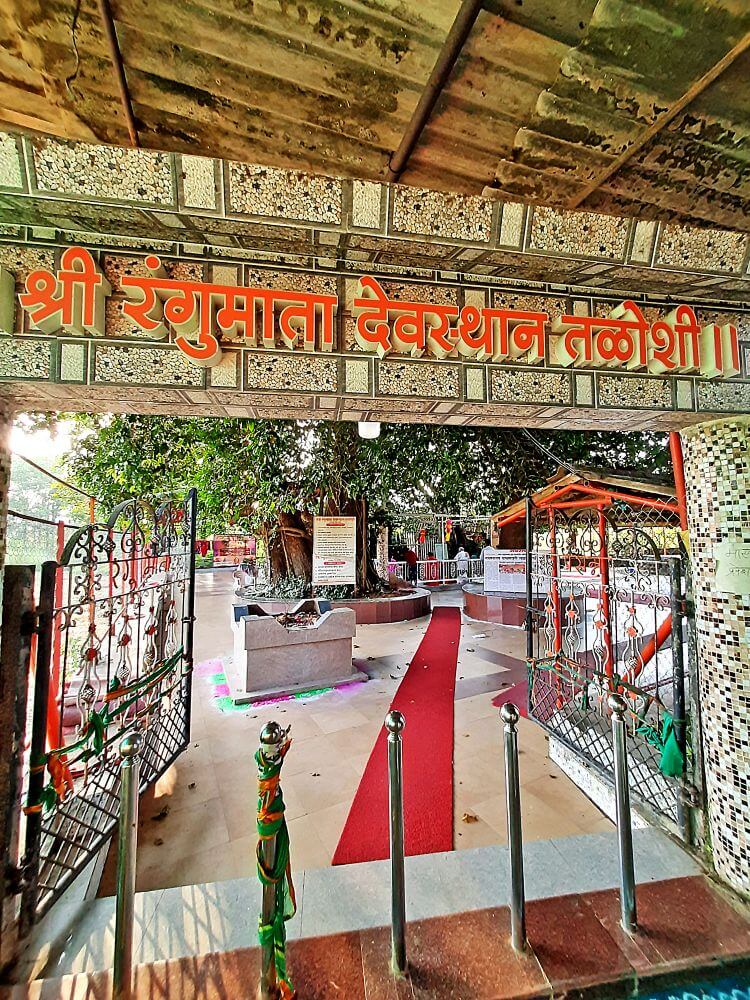 महाड–रायगड रस्त्यापासून सुमारे २ किमी अंतरावर तळोशी हे गाव आहे. या रस्त्यापासून रंगुमाता देवस्थानापर्यंत जाण्यासाठी गाडीरस्ता आहे. या देवस्थानाच्या कमानीतून एका प्रशस्त प्रांगणात प्रवेश होतो. भाविकांच्या सोयीसाठी या प्रांगणात पत्र्याचा मंडप (शेड) व फरसबंदी करण्यात आलेली आहे. या परिसरातील मोठमोठ्या वृक्षांखाली पार बांधलेले आहेत. याशिवाय येथे एक प्राचीन विहीरही आहे. मंदिराचे गर्भगृह म्हणजेच रंगुमातेचे स्थान जेथे आहे तेथे मध्यम आकाराचे खोड असलेली दोन झाडे आहेत. या दोन्ही खोडांना दोन ते अडीच फूट उंचीपर्यंत साडी नेसविली जाते. या स्थानाभोवती तिन्ही बाजूंनी दोन फूट उंचीची भिंत आहे. या झाडांच्या मागच्या बाजूला भाविकांकडून देवीला अर्पण करण्यात येणाऱ्या हिरव्या बांगड्यांच्या माळा लावलेल्या आहेत.