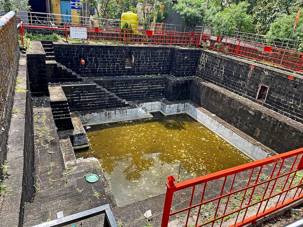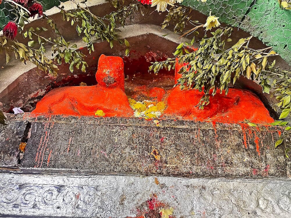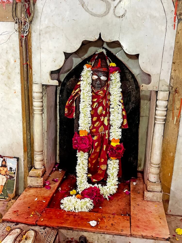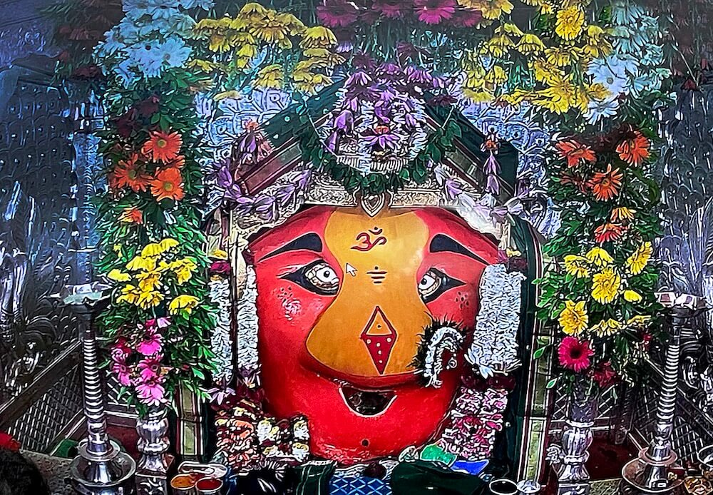 या मंदिराच्या सभामंडपात मोठे दगडी स्तंभ आहेत व वरील बाजूला ते एकमेकांशी महिरपी कमानीने जोडलेले आहेत. या खांबांवर आणि छतावर काही ठिकाणी जुन्या कलाकुसरीचे अवशेष दिसतात. येथील गर्भगृहाची रचना ही एखाद्या गुहेप्रमाणे किंवा कपारीसारखी आहे. या गर्भगृहाचे प्रवेशद्वार चांदीने मढविलेले आहे. गर्भगृहात मध्यभागी देवीची तांदळा स्वरूपातील शेंदूरचर्चित मूर्ती (मुखवटा) आहे. हा मुखवटा सुमारे पाच फूट उंच आणि चार फूट रुंद आहे. देवीला सोन्या-चांदीचे विविध दागिने, नथ आणि कर्णफुले यांनी सजवले जाते. येथे देवीचे केवळ मुखच पूजले जाते, कारण धड हे जमिनीखाली गुप्त असल्याची मान्यता आहे. या मंदिरापासून काही दुसऱ्या मार्गावरील काही पायऱ्या उतरून पायथ्याशी असलेल्या परशुराम मंदिरात जाता येते. या मंदिरात दररोज आलेल्या भाविकांसाठी महाप्रसादाची सुविधा असते.