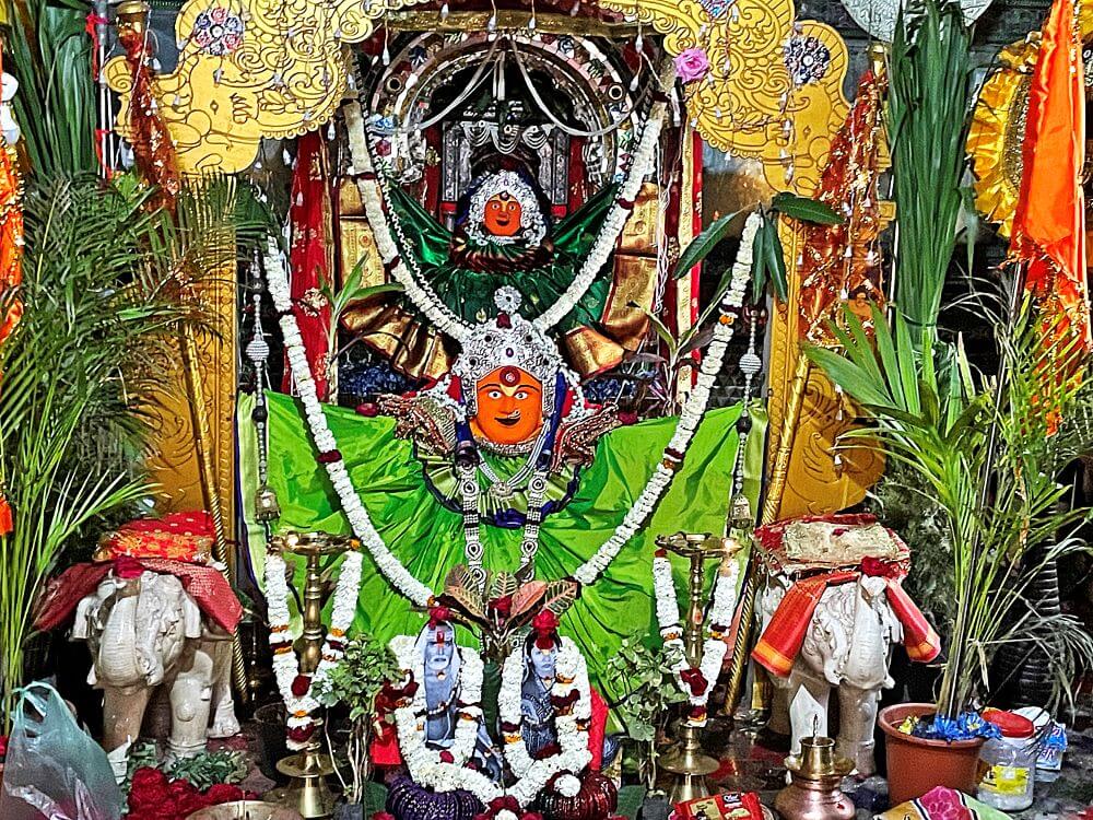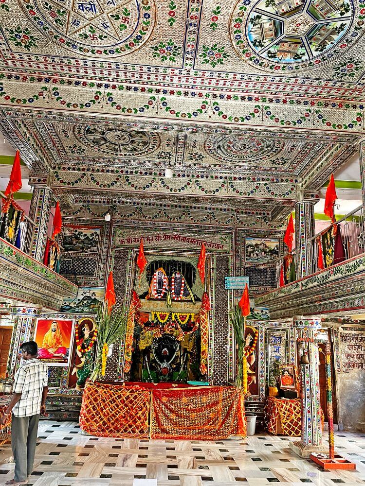 गर्भगृह में त्रिलिंगी शिवलिंग है। यह ब्रह्मा, विष्णु और महेश के प्रतीक रूप में पूजित है। मंदिर परिसर में कुछ वीर–शिला भी हैं। महाशिवरात्रि के अवसर पर यहाँ उत्सव आयोजित होता है। हर श्रावण सोमवार को सैकड़ों श्रद्धालु त्रिमुखी महादेव के दर्शन के लिए यहाँ आते हैं।