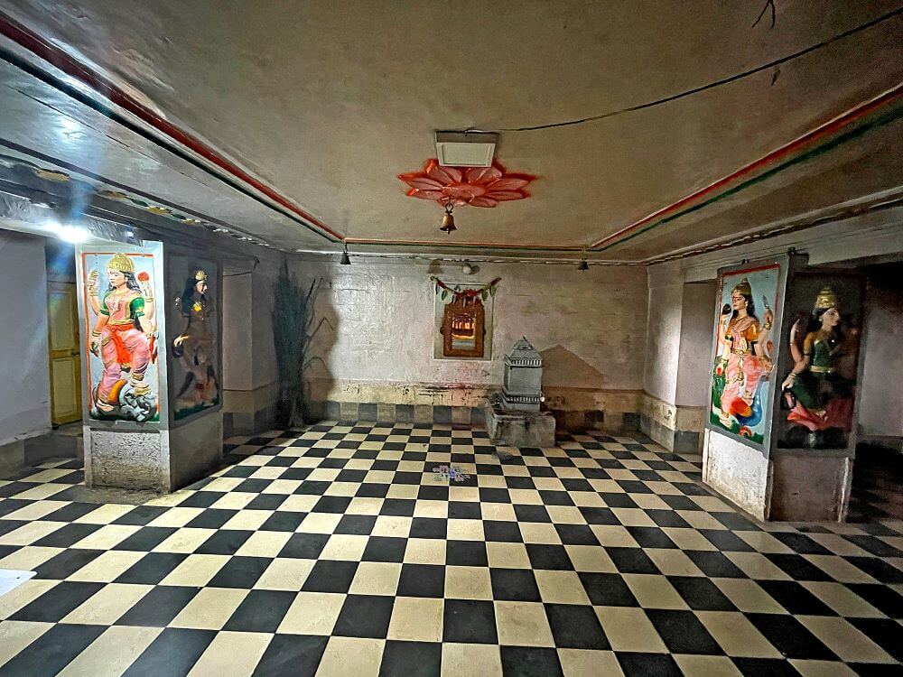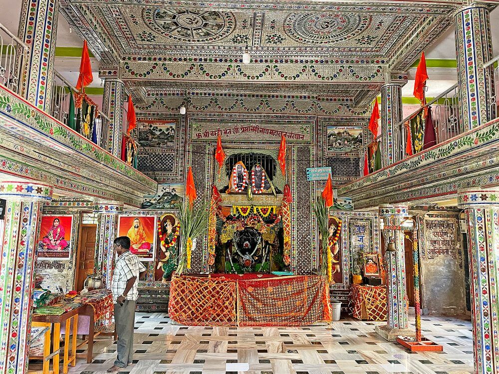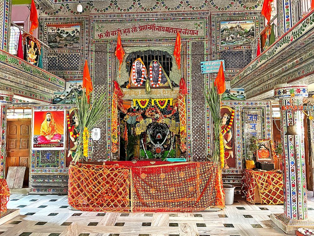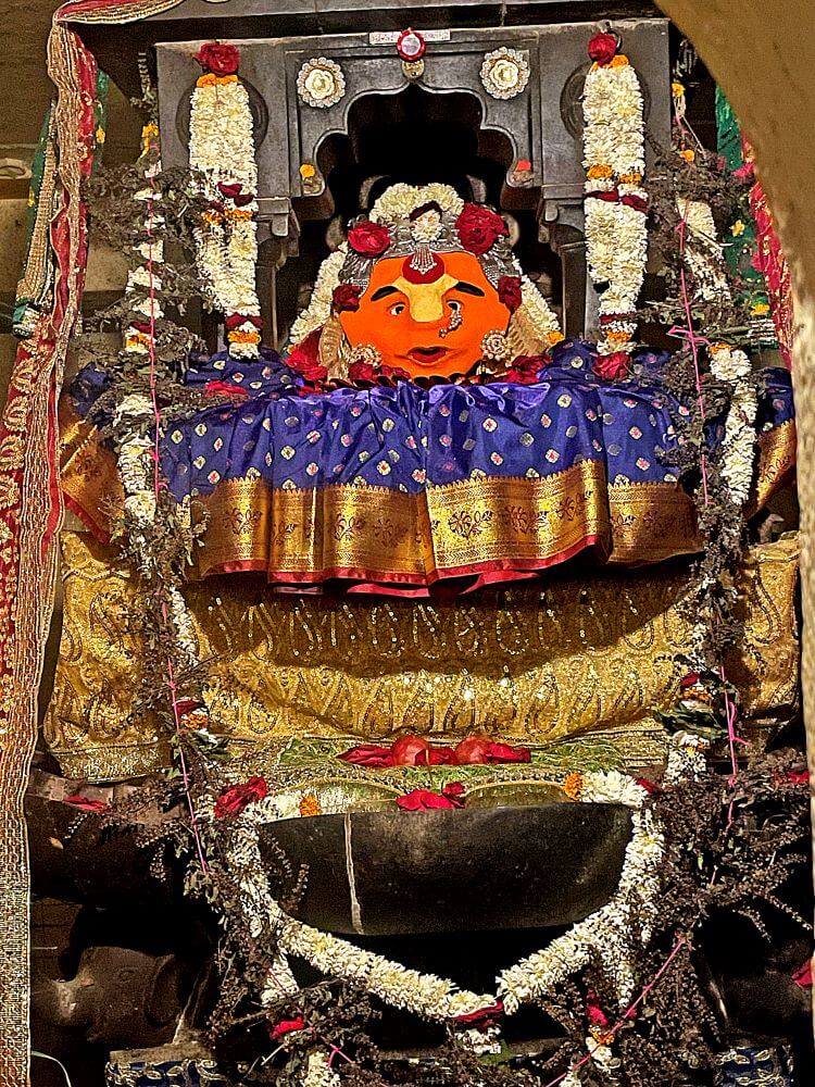 गर्भगृह में त्रिलिंगी शिवलिंग है। यह ब्रह्मा, विष्णु और महेश के प्रतीक रूप में पूजित है। मंदिर परिसर में कुछ वीर–शिला भी हैं। महाशिवरात्रि के अवसर पर यहाँ उत्सव आयोजित होता है। हर श्रावण सोमवार को सैकड़ों श्रद्धालु त्रिमुखी महादेव के दर्शन के लिए यहाँ आते हैं।