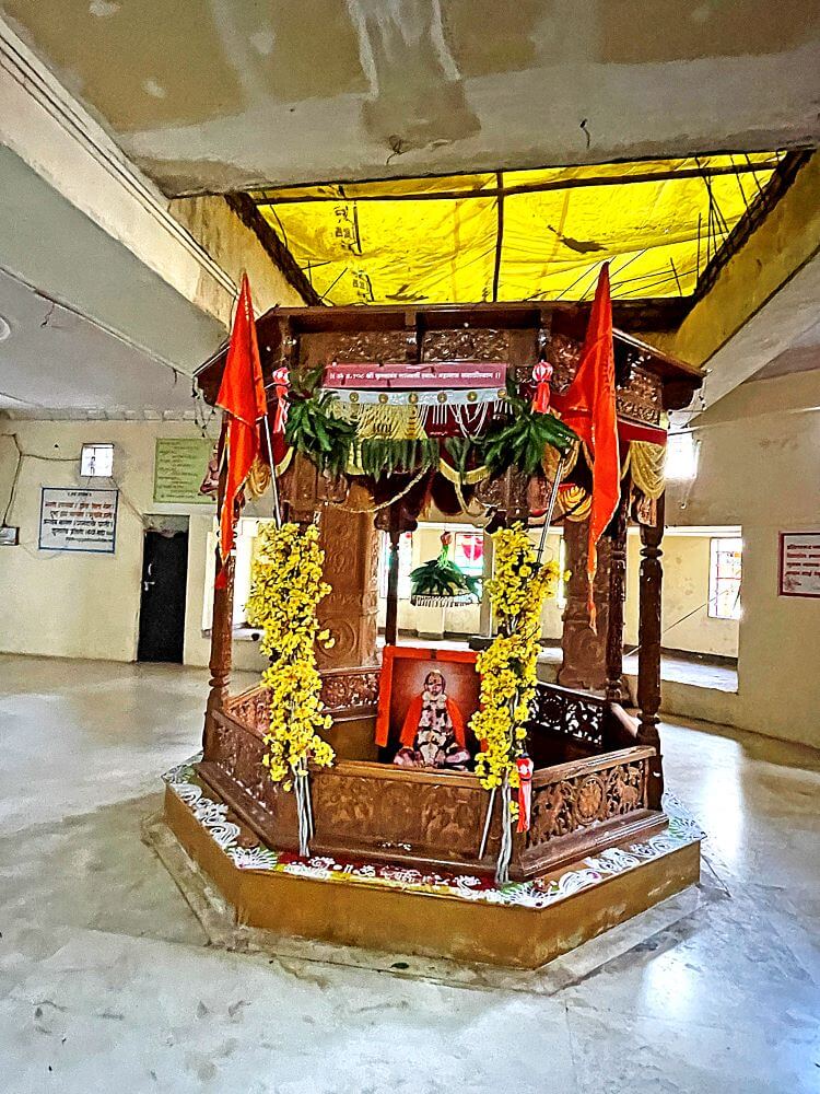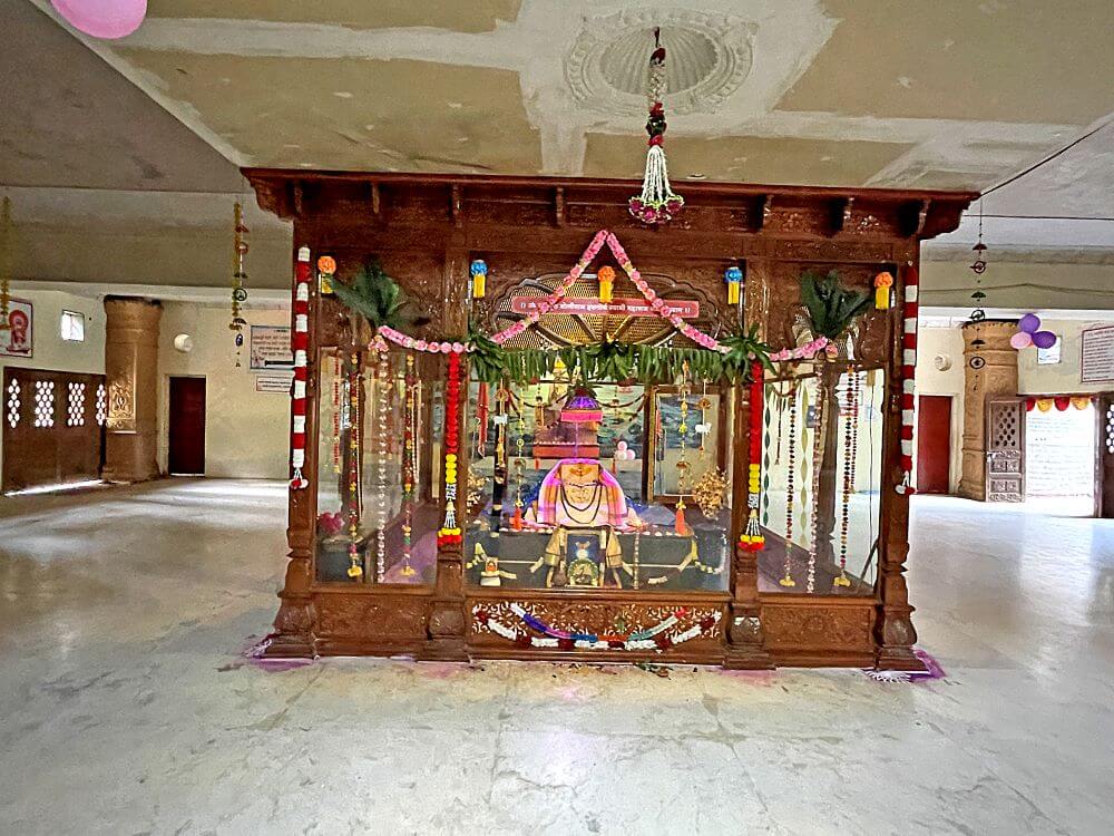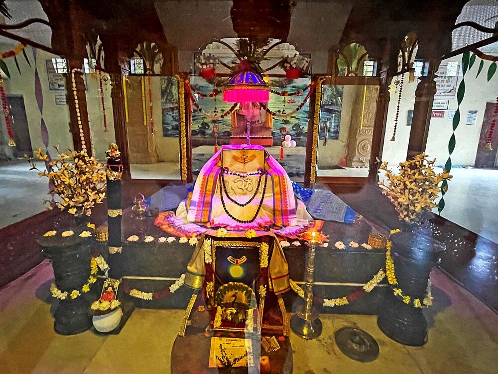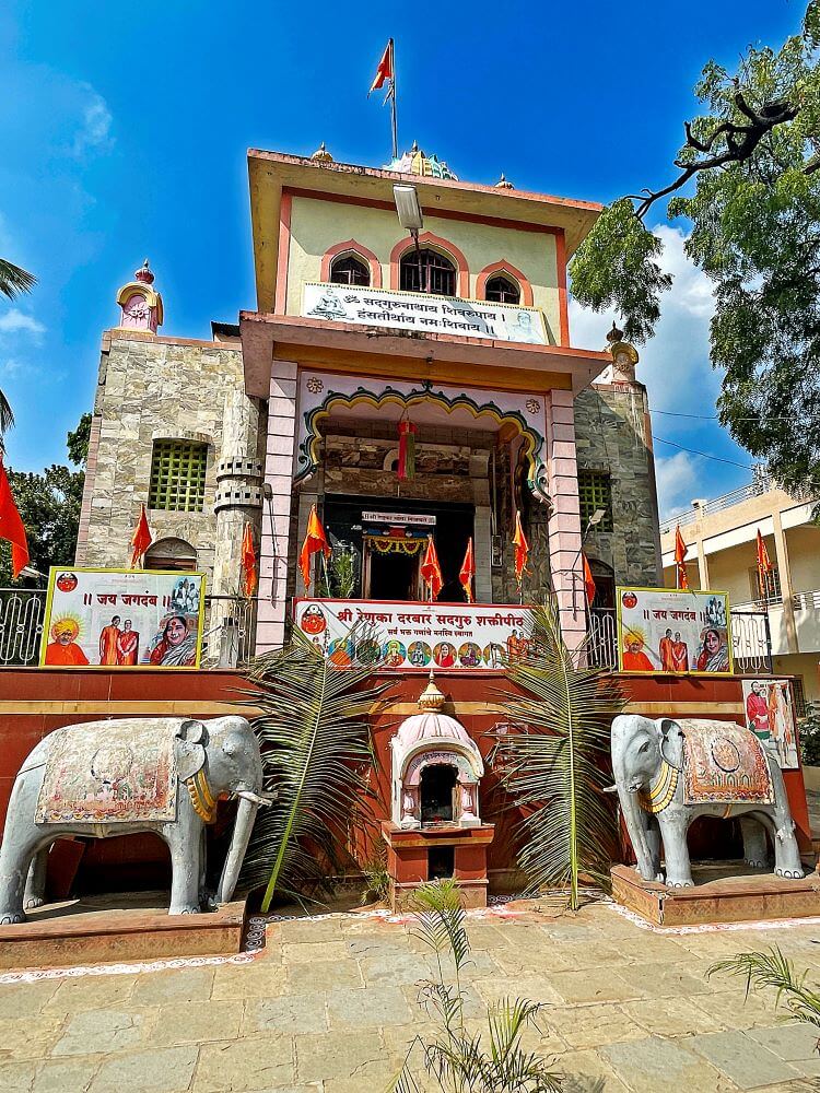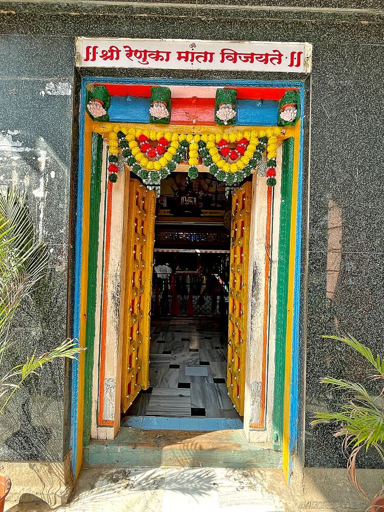गर्भगृह में रेणुका देवी की देवमुख जैसी बनी पाषाण मूर्ति है। देवी की पाषाण मूर्ति के साथ–साथ जलदेवता, नागदेवता, कालभैरव, सप्तयोगिनी, श्रीदत्त और वेताल की पाषाण मूर्तियाँ भी हैं। इसी कारण यह मंदिर “माता दरबार” के रूप में प्रसिद्ध है। यहाँ निरंतर कई उत्सव मनाए जाते हैं। इनमें वासंती नवरात्रि, गुरु पूर्णिमा और शारदीय नवरात्र विशेष रूप से प्रमुख हैं। इन उत्सवों में हज़ारों श्रद्धालु दर्शन हेतु आते हैं। मंदिर परिसर में योगीराज हंसतीर्थ स्वामी की समाधि भी स्थित है।