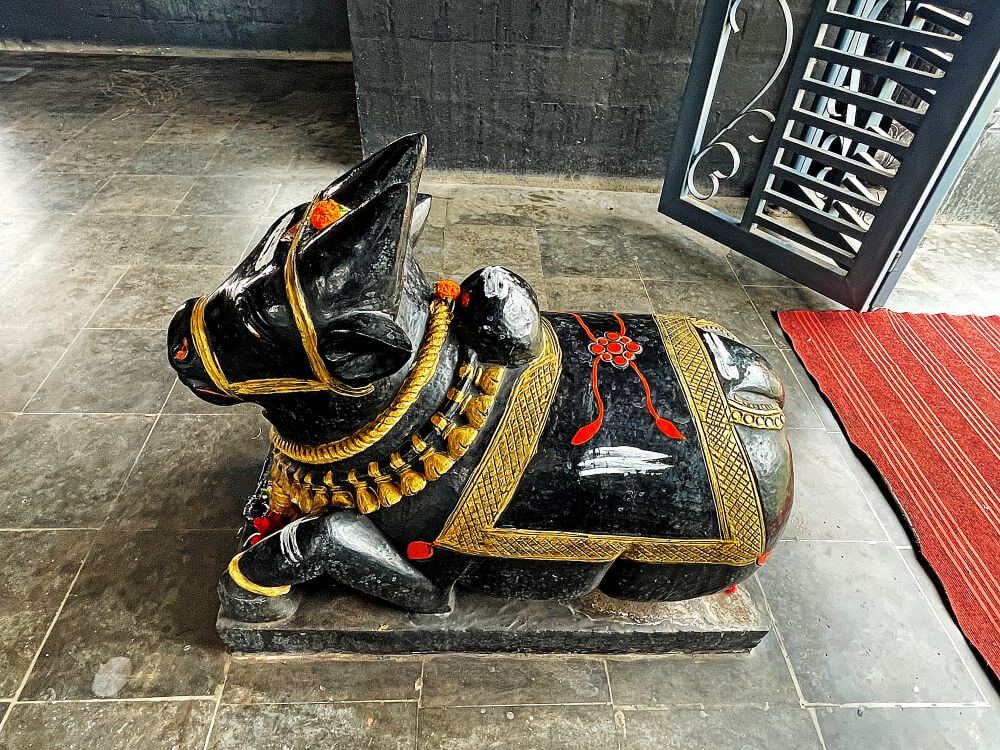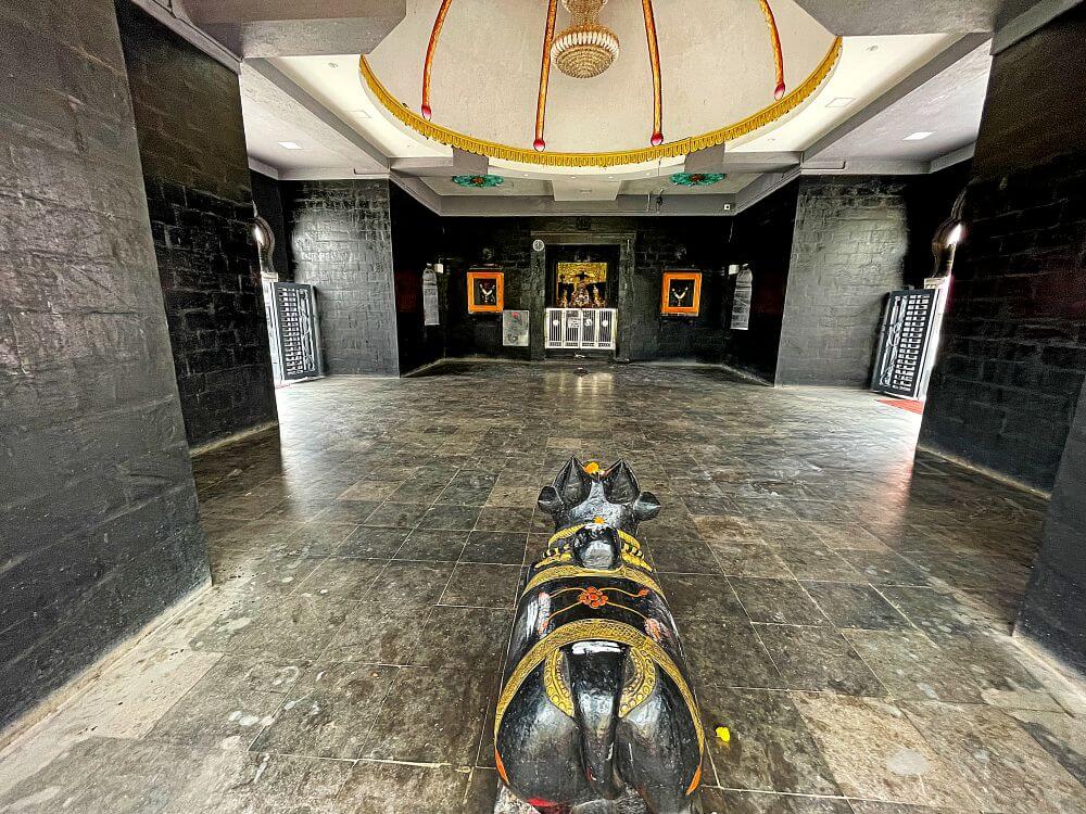 येथील सभामंडप बंदिस्त स्वरूपाचा आहे. वितान घुमटाकार व छताला पितळी घंटा टांगलेल्या आहेत. सभामंडपात जमिनीवर कासव शिल्प आणि गर्भगृहाच्या प्रवेशद्वारासमोर एका चौथऱ्यावर नंदीची मूर्ती आहे. गर्भगृहाच्या प्रवेशद्वाराच्या द्वारशाखांवर पानाफुलांच्या नक्षी आहेत. ललाटबिंबावर गणपतीची मूर्ती व ललाटपट्टीवर पर्णलता व पुष्पलता नक्षी आहेत. प्रवेशद्वाराच्या दोन्ही बाजूस दीपकोष्टके आहेत.