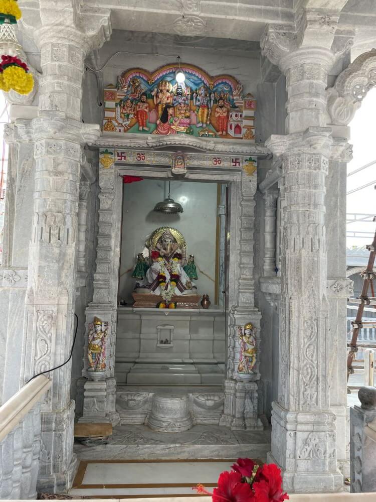 प्रांगणात मध्यभागी उंच अधिष्ठानावर रिद्धि सिद्धी गणेश मंदिर आहे. या अधिष्ठानावर गजथर आहे. मुखमंडप, सभामंडप व गर्भगृह अशी या मंदिराची संरचना आहे. सहा पायऱ्या चढून मंदिराच्या मुखमंडपात प्रवेश होतो. येथील मुखमंडप व सभामंडप खुल्या स्वरूपाचे आहेत. मुखंडपासह सभामंडपातील प्रत्येक स्तंभ एकमेकांशी महिरपी कमानीने जोडलेले आहेत. या सर्व खांबांवर वरच्या बाजूने वादक आणि नर्तकींची शिल्पे आहेत.