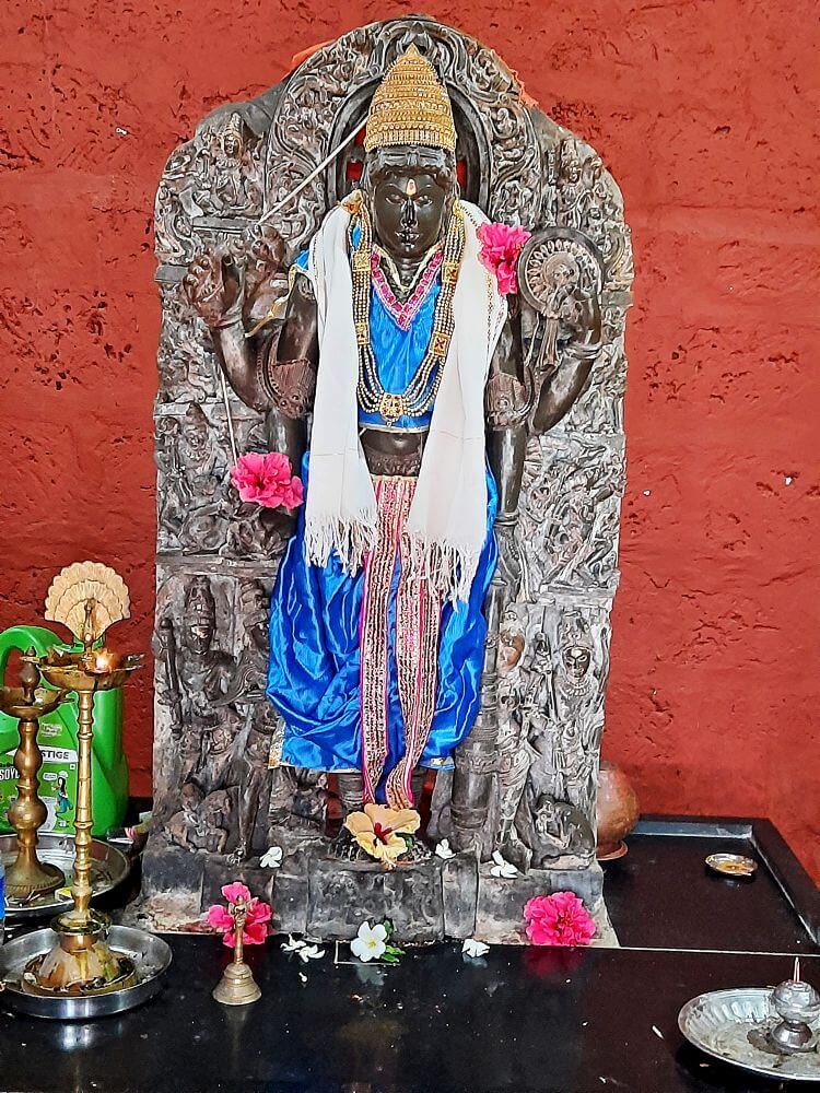 मुकुट व त्यावर असलेले कौस्तुभ चिन्ह व व्याघ्रमुखामुळे ही मूर्ती दक्षिण भारतीय शैलीची असल्याचे सांगितले जाते.
