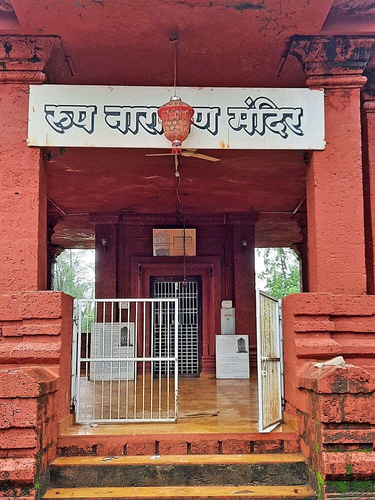 अशा या इतिहासप्रसिद्ध गावात समुद्रकिनाऱ्याला लागून नारळ आणि पोफळीच्या दाट झाडांमध्ये हे रूपनारायणाचे सुंदर व छोटेखानी मंदिर वसले आहे. येथील प्राचीन मंदिराचा जीर्णोद्धार १९६० साली करण्यात आला होता. त्यानंतर अलीकडच्या काळात या मंदिराचे जांभ्या दगडात बांधकाम करून नूतनीकरण करण्यात आलेले आहे. या मंदिरासमोर एक दीपस्तंभ आहे. हे मंदिर उंच जोत्यावर आहे. मंदिरासमोर जांभ्या दगडाचे चार मोठे स्तंभ आहेत. मुखमंडप, सभामंडप व प्रदक्षिणामार्ग सोडून गर्भगृह अशी या
