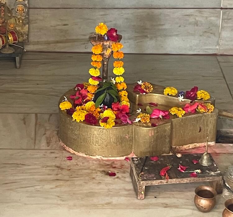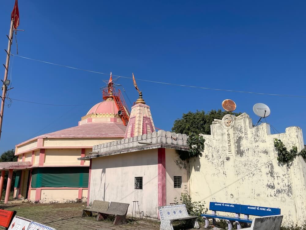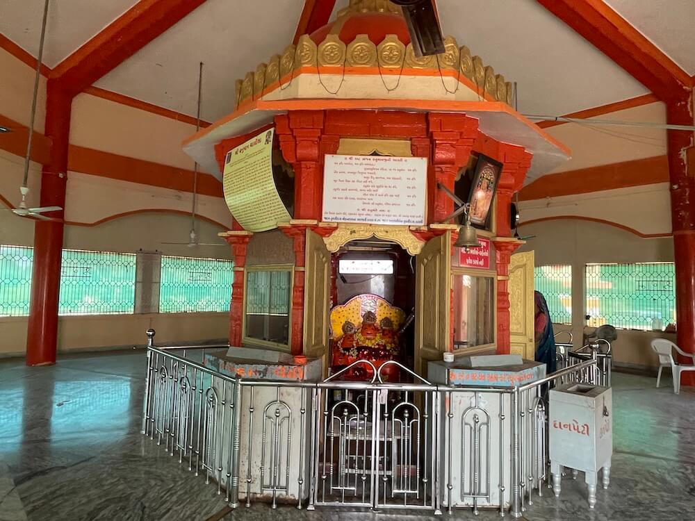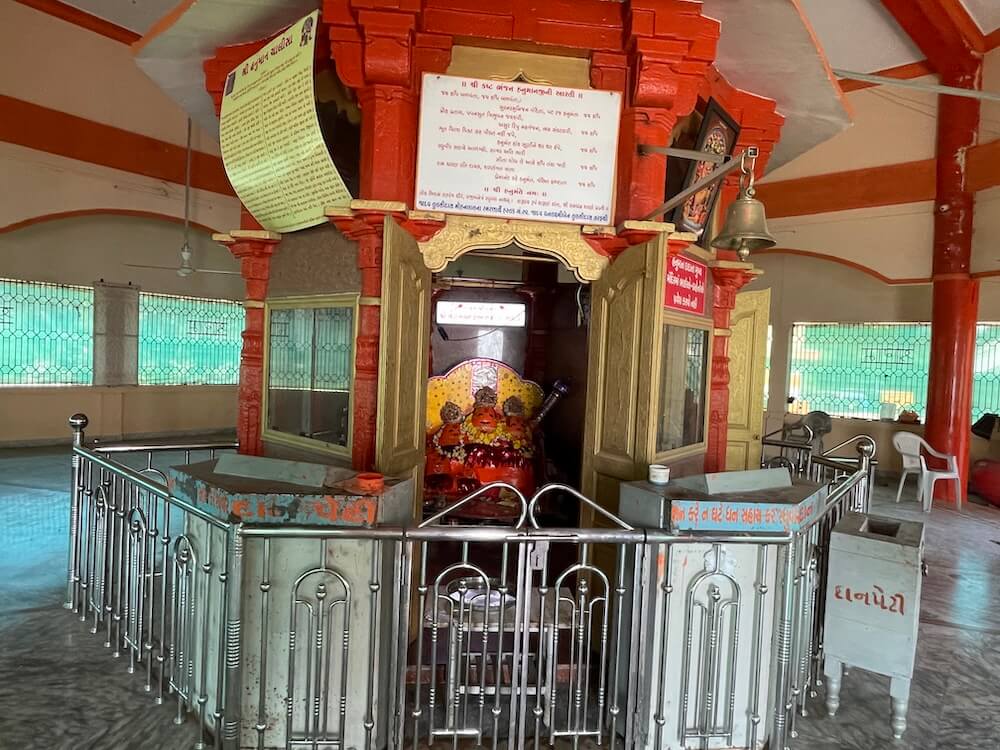 The temple complex also houses the shrines of Narmadeshwar Mahadev, Baliyadev and Bhathiji Maharaj. Outside the temple, facing the Narmada, cement benches are provided for visitors to enjoy the view. From this vantage point, the grand cable-stayed bridge over the river can be seen.