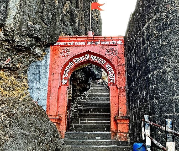 पायथ्यापासून १३० पायऱ्या चढून आल्यावर छत्रपती शिवाजी महाराज महाद्वार लागते. उंच आणि रेखीव बुरुजांमधील या महाद्वारापासून आणखी ५० पायऱ्या चढल्यावर आणखी एक दरवाजा आहे. त्याला ‘समर्थ महाद्वार’ असे नाव आहे. महाद्वारे रात्री ९ ते सकाळी ५ यादरम्यान बंद असतात.