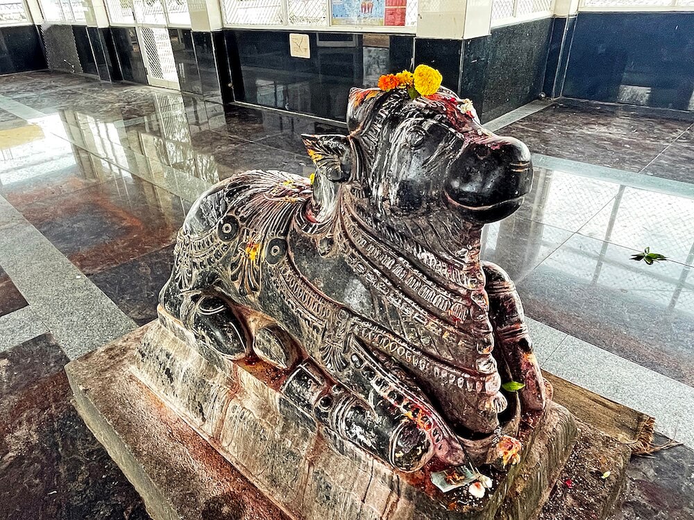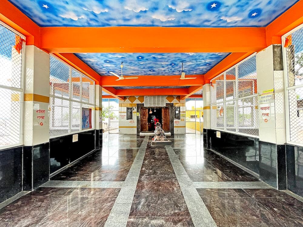प्रांगणातून पुढे आल्यावर अलिकडे बांधलेल्या सभामंडपाचे प्रवेशद्वार लागते. अर्धखुल्या स्वरूपाच्या सभामंडपात बाहेरील बाजूस कठडा व या कठड्यात दोन नक्षीदार चौकोनी स्तंभ आहेत. स्तंभांवर तुळई व तुळईवर छत आहे. सभामंडपात डाव्या व उजव्या बाजूला आणखी दोन दरवाजे आहेत. सभामंडपाच्या पुढील भागात एका चौथऱ्यावर नंदीची काळ्या पाषाणातील मूर्ती आहे. नंदीच्या पाठीवरील झूल, गळ्यातील गोंडे व घंटांच्या माळा अत्यंत बारकाईने कोरलेल्या आहेत. पुढे मंदिराचे प्राचीन हेमाडपंती स्थापत्यशैलीतील बांधकाम असलेले अंतराळ व गर्भगृह आहे. अंतराळाच्या प्रवेशद्वारास नक्षीदार लाकडी झडपा व त्याच्या उत्तरांगावर शिखरशिल्पांचे तोरण कोरलेले आहे. प्रवेशद्वाराच्या दोन्ही बाजूस वातायने आहेत व छताला पितळी घंटा लटकवलेल्या आहेत.