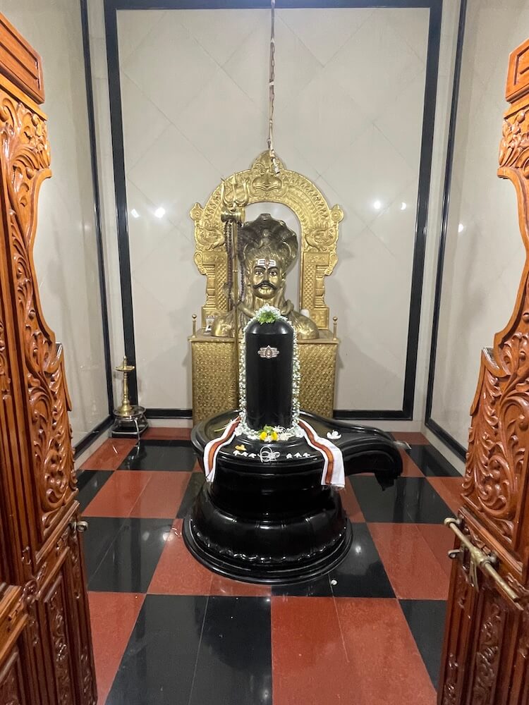 गर्भगृहाच्या प्रवेशद्वारासमोर वज्रपिठावर काळ्या पाषाणातील मूषक मूर्ती आहे.