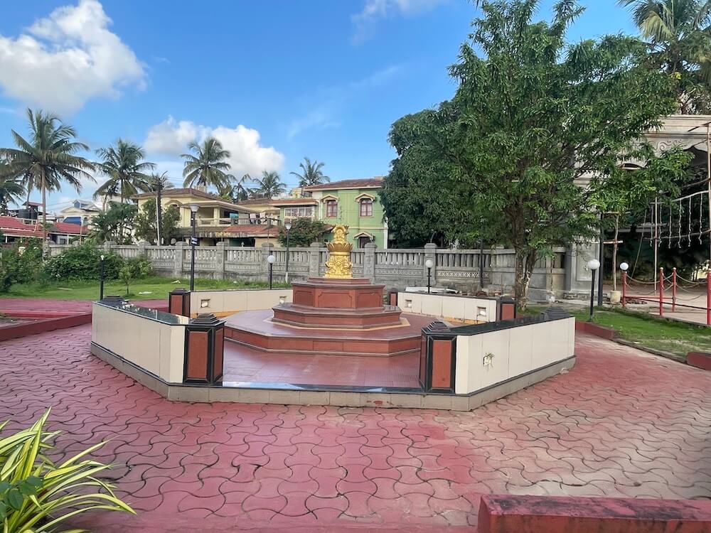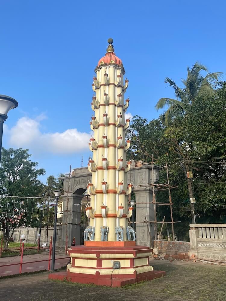 प्रांगणात प्रवेशद्वारासमोर अष्टकोनी चौथऱ्यावर अष्टस्तंभाची रचना असलेली आठ थरांची दीपमाळ आहे. दीपमाळेच्या प्रत्येक थरात आठ असे एकूण ६४ हस्त आहेत. दीपमाळेच्या शीर्षभागी मंगल कलशाची प्रतिकृती आहे.