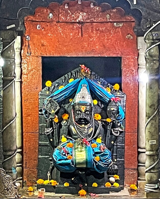 मूर्तीच्या प्रभावळीतील शीर्षपट्टिकेवर विष्णूचे मत्स्य, कूर्म, वराह, नरसिंह, वामन, परशुराम, राम, बलराम, कृष्ण व कल्की हे दशावतार कोरलेले आहेत. देवाच्या डोक्यावर चांदीचा मुकुट आहे. मंदिराच्या छतावर चहूबाजूने सुरक्षा कठडा आहे. त्यात छतावरील पावसाचे पाणी बाहेर पडण्यासाठी प्रणाळ आहेत. गर्भगृहाचे छत घुमटाकार आहे.