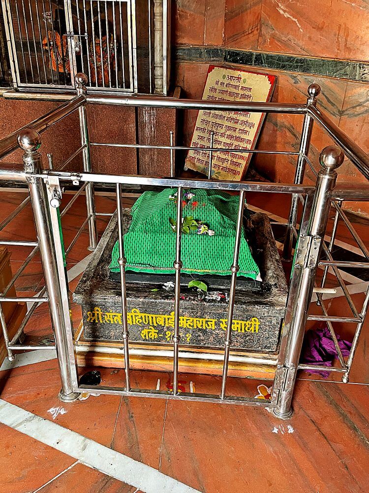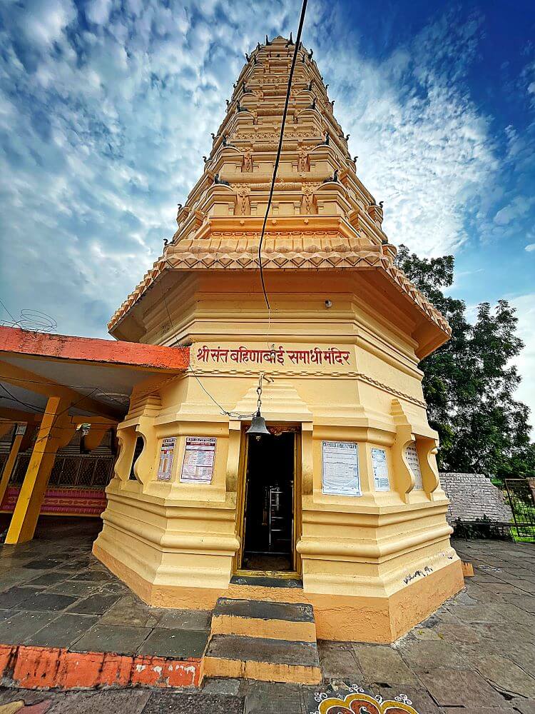मंदिराला दोन प्रवेशद्वारे असून द्वारपट्ट्यांवर धार्मिक प्रतिकांची कलाकुसर करण्यात आलेली आहे. समोरच संत बहिणाबाईंची समाधी आहे. तेथे १९६८ मध्ये ह. भ. प. काशिनाथबाबा मोगल यांनी बहिणाबाईंच्या पादुकांची स्थापना केली. बाजूलाच बहिणाबाईंचे पुत्र संत विठोबा महाराज यांचीही समाधी आहे. त्या पाठीमागे भिंतीस लागून विठ्ठल–रुक्मिणीच्या मूर्ती आहेत. मंदिराच्या भिंतींवर देहूतील गाथामंदिराप्रमाणेच अभंग लिहिलेले आहेत.