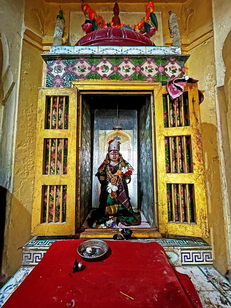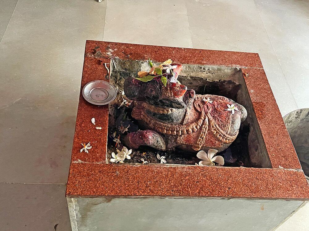 पंचधातूच्या शाळुंकेवर ‘ॐ’, ‘स्वस्तिक’ आदी मंगलप्रतिके आणि शिवलिंगावरील आवरणावर शंकरांचे मुख कोरलेले आहे. या मंदिरानजीक उंच शिखर असलेले आणखी एक पुरातन शिवालय आहे. त्यात पिंडीसोबत श्रीकृष्णाची मूर्ती आहे. या परिसरात एक पायविहीर होती. ती आता बुजली असून तीच्या केवळ वरच्या भिंती पाहता येतात.