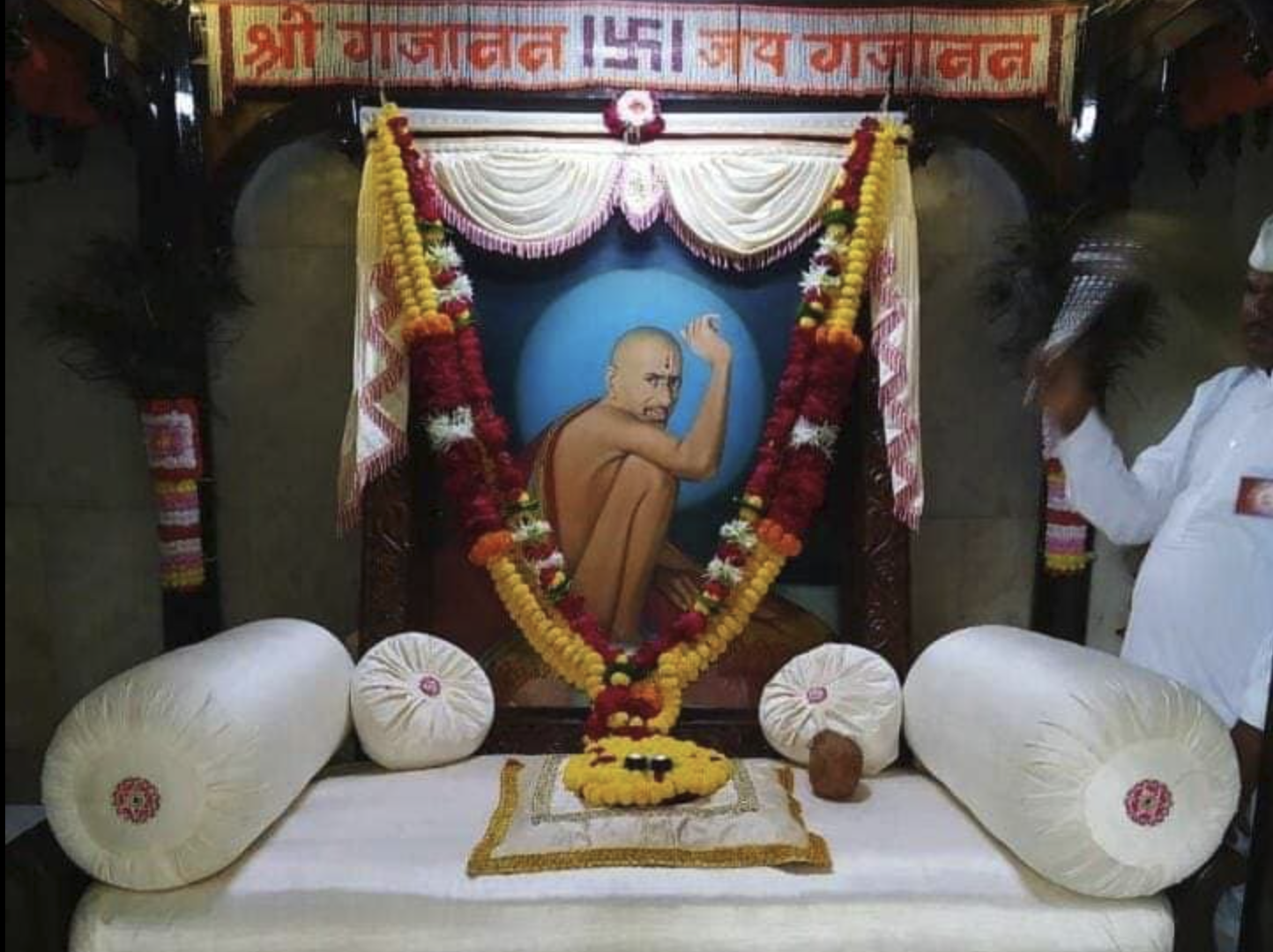 जाताना ते एका रेतीच्या गाडीवर बसले. तिचा गाडीवान एक महार जातीचा गृहस्थ होता. तो गाडीतून उतरला. ते पाहून महाराजांनी त्याला सांगितले की ‘आम्हां परमहंसांस। विटाळाची बाधा नसे।।’ अशा प्रकारे स्पृश्यास्पृश्यतेला थारा देऊ नये, असा उपदेश महाराजांनी स्वकृतीतून दिला. त्या ठिकाणी ते एका जागी जाऊन बसले. तेव्हा ती जागा मठाच्या मध्यभागी यावी म्हणून कारभाऱ्यांनी थोडीशी बाजूची जागा वापरली. त्यावेळी गावातील एका गृहस्थाने सरकारी जागेवर अतिक्रमण झाल्याची तक्रार केली. त्यावरून जोशी नावाचे एक अधिकारी चौकशीसाठी आले. तेव्हा गजानन महाराजांनी स्फूर्ती दिल्याने जोशी यांनी संस्थेला केलेला दंड चुकीचा असल्याचा शेरा दिला व हे प्रकरण मिटले. महाराज तेव्हा जेथे बसले होते, त्याच जागी आता त्यांची समाधी आहे.