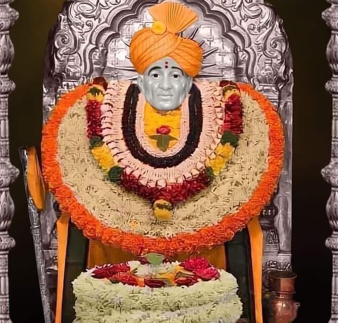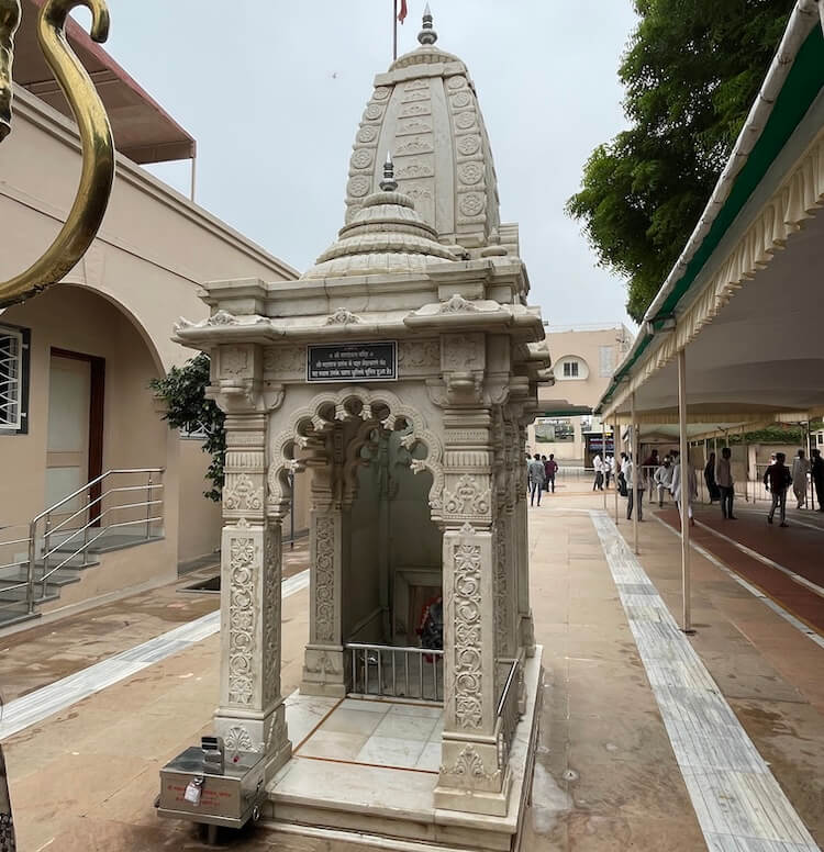 महाराजांची समाधी एका गुहेमध्ये आहे. येथे खाली उतरण्यासाठी संगमरवरी पायऱ्या आहेत. या गुहेमध्ये शिरल्यानंतर डावीकडे आणि मग उजवीकडे अशी वळणांची वाट आहे. ती पार केल्यानंतर आपण समाधीच्या समोर येतो.