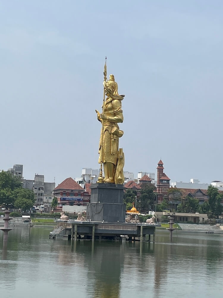 The installation of the 111-foot-tall statue of Sarveshwar Mahadev in the center of the lake was the initiative of the ‘Satyam Shivam Sundaram Trust’ in collaboration with the Vadodara Municipal Corporation. Work on the statue began in 1996 and was completed in 2002. On the auspicious day of Mahashivratri, the statue was inaugurated by the head of BAPS Swaminarayan Sanstha, Swami Maharaj. This monumental statue stands on 23 pillars buried 78 feet deep. Made using steel, copper sheets and reinforced concrete, the foundation and pillars were designed based on ancient principles of “Ashtasiddhi Yantra Vidya”, numerology, astrology and colour science.