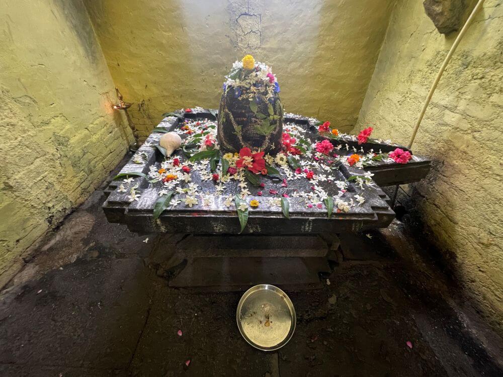 गर्भगृहात जमिनीवर मध्यभागी मोठी शिवपिंडी आहे. शिवपिंडीवर जलधारा धरलेले अभिषेक पात्र छताला टांगलेले आहे. शिवपिंडीतील शाळूंका चौकोनी आहे. गर्भगृहात वितानावर चक्राकार नक्षी आहेत. महाशिवरात्री हा येथील मुख्य वार्षिक उत्सव उत्साहाने साजरा केला जातो. या वेळी परिसरातील हजारो भाविक देवाच्या दर्शनासाठी येतात. महाशिवरात्री व श्रावणमासात मंदिरात महाअभिषेक, भजन, महाप्रसाद आदी कार्यक्रमांचे आयोजन केले जाते. सोमवार, पौर्णिमा, अमावस्या आदी दिवशी भाविकांची येथे जास्त वर्दळ असते. मंदिराचे स्थापत्यशास्त्र व शिल्पकला अभ्यासण्यासाठी अनेक अभ्यासक मंदिराला भेटी देतात.