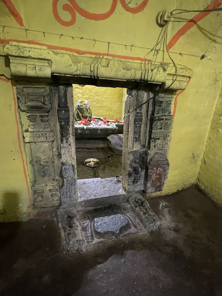 सभामंडपापेक्षा उंचावर असल्यामूळे अंतराळाच्या प्रवेशद्वारास एक पायरी आहे. अंतराळाच्या द्वारशाखा सपाट व साध्या आहेत. त्यांवर तैलरंगाने नक्षी चित्रीत केलेल्या आहेत. गर्भगृहाच्या प्रवेशद्वारावर एका बाजूला चामरधारीणी द्वारपालिका व व्याल शिल्पे आहेत तर दुसऱ्या बाजूला चतुर्भुज द्वारपाल व बाजूला गणेशशिल्प आहे. द्वारपालाशेजारी गणेश प्रतीमा असणे किंवा दोन्ही बाजूस वेगवेगळे द्वारपाल असणे ही रचना अनोखी आहे. द्वारशाखांवर स्तंभ नक्षी व ललाटबिंबावर गणेशमूर्ती आहे.