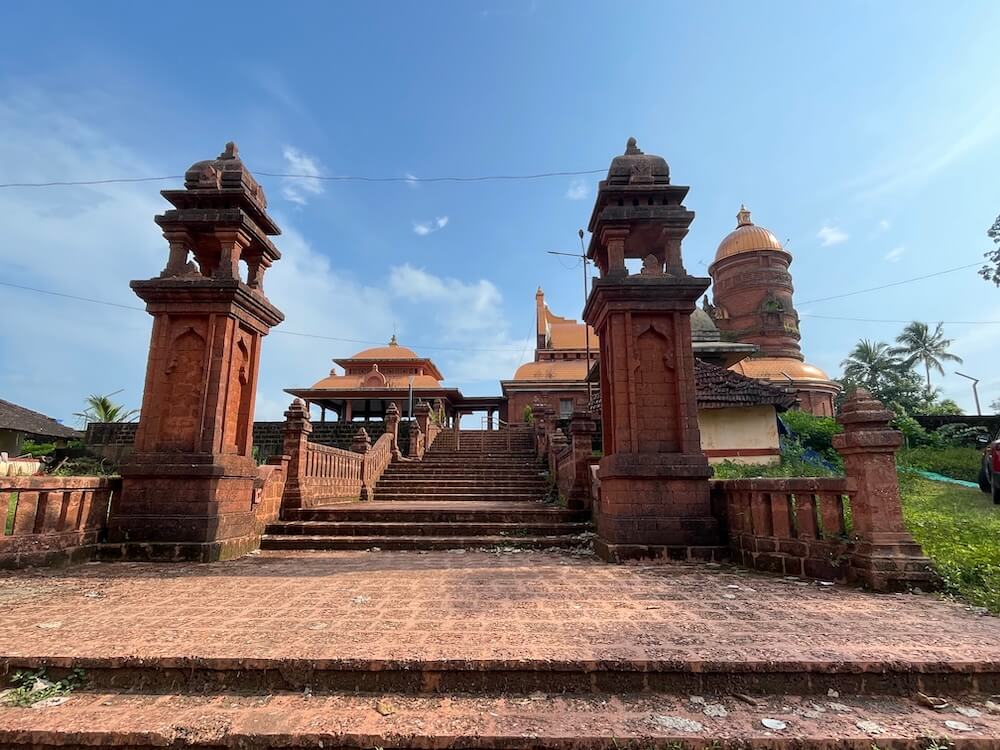 ही गोमंतकीय शैलीपेक्षा वेगळी असून ती महाराष्ट्रातील मंदिराबाहेर उभारल्या जाणाऱ्या दीपमाळेशी नाते सांगते. या मंदिराची वास्तू पारंपरिक गोमंतकीय स्थापत्यशैलीतील आहे. दुहेरी छताचा खुला सभामंडप, गजपृष्ठाकार छताचा गुढमंडप आणि गर्भगृह अशी मंदिराची रचना आहे. गर्भगृहाला गोमंतकीय शैलीचा घुमट आणि शिखर आहे. अर्धखुला सभामंडप, अंतराळ व गर्भगृह अशी या मंदिराची संरचना आहे.