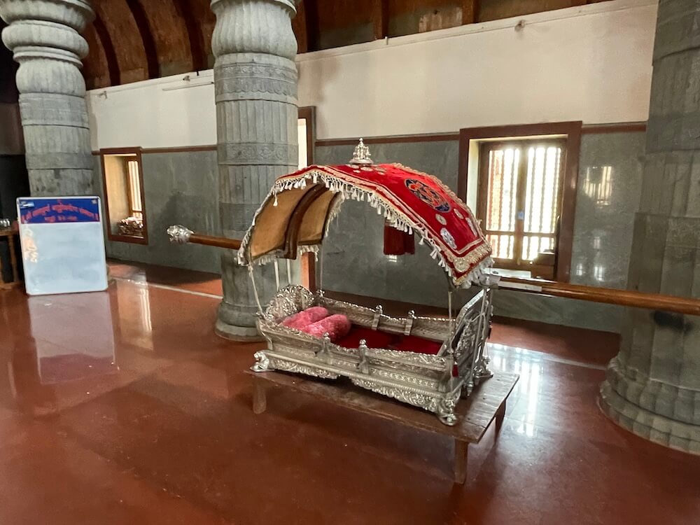 या मंदिराच्या मुख्य प्रवेशद्वारासमोर असलेल्या प्रशस्त प्रांगणात मध्यभागी एक धातूचा खांब उभा केलेला आहे. तो येथील प्रसिद्ध गडे उत्सवासाठी वापरण्यात येतो. महाराष्ट्रात अनेक गावांमध्ये यात्रोत्सवात बगाड किंवा गाडीबगाड फिरवण्याची परंपरा आहे. त्याच प्रमाणे बाळ्ळीतील या मंदिरात चैत्र महिन्यात ‘शिडियोत्सव’ किंवा ‘गडे उत्सव’ साजरा केला जातो. हा येथील मुख्य वार्षिक उत्सव आहे. या उत्सवाची तयारी चैत्र शुक्ल पक्षाच्या पंचमीपासून सुरू होते. यात येथील धातूच्या उंच खांबावर असलेल्या आडव्या लाकडी खांबास भाविक स्वतःस टांगून घेतात. नंतर तो आडवा खांब गोलगोल फिरवला जातो. देवीस केलेल्या नवसाची पूर्ती म्हणून हा कष्टप्रद विधी केला जातो. अशा प्रकारे लटकणाऱ्या भाविकास गडो असे म्हणतात. हा गडो या उत्सव काळात कठोर व्रत करतो. त्या काळात तो फक्त फळे आणि पाणी सेवन करतो. या प्रसंगी तयार केल्या जाणाऱ्या गूळ-तांदळाच्या मिठाईलाही गड्या असेच म्हटले जाते. हा विधी पाहण्यासाठी येथे मोठ्या संख्येने भाविक येतात.