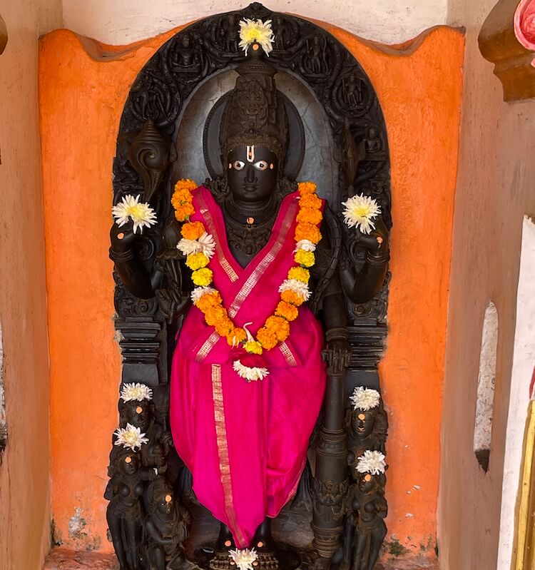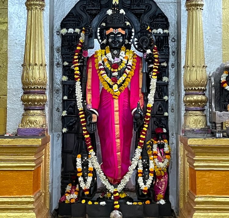 मूर्तीच्या उजव्या बाजूस काळ्या पाषाणात घडवलेली आणखी एक मूर्ती आहे. ती ८३ बाय ५३ सेंटिमीटर उंच व रुंद आहे. शारंगधराची मूर्ती व ही मूर्ती शिल्पवैशिष्ट्यांच्या दृष्टीने समान आहेत. त्यामुळे या दोन्ही मूर्ती एकाच कारागिराने घडवलेल्या असाव्यात, असे मानले जाते. वृंदावनमध्ये ‘वृंदावन बिहारी लाल की जय’ असे, तर तिरुपती येथे ‘गोविंदा गोविंदा’ म्हणत बालाजीचा जयघोष केला जातो. तर मेहकर येथे ‘लक्ष्मीरमण शारंगधर गोविंदा गोविंदा’ असा जयघोष केला जातो.