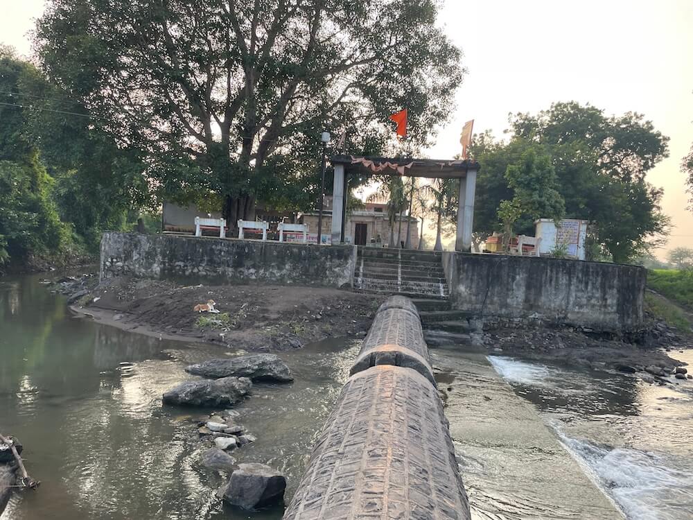काटेपूर्णा नदीकिनारी दाट वनराई असलेल्या भागामध्ये उंच स्थानी हे मंदिर वसले आहे. मंदिरासमोर एका चौथऱ्यावर नंदीच्या दोन मूर्ती बसवलेल्या आहेत. यातील एक मूर्ती प्राचीन आहे. त्यासमोर लोखंडी त्रिशूळ व पारंपरिक पद्धतीचे तुळशी वृंदावन आहे. त्यापुढे होमकुंड आहे. हेमाडपंती स्थापत्यशैलीत बांधलेल्या या प्राचीन मंदिराची कालौघात पडझड झाली होती,