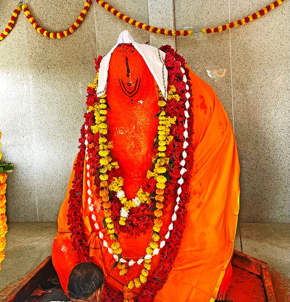 शिष्य व गावकऱ्यांच्या विनंतीनुसार महाराजांनी मूर्तीला स्पर्श करताच मूर्ती आपोआप सरळ झाली. मग महाराजांनी याच ठिकाणी मूर्तीची प्राणप्रतिष्ठापना केली. पुढे गावकऱ्यांनी या ठिकाणी मंदिर बांधले. ही आख्यायिका “साधू सुधा” या साधू महाराजांच्या चरित्रग्रंथात आढळते.