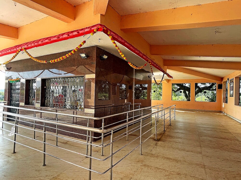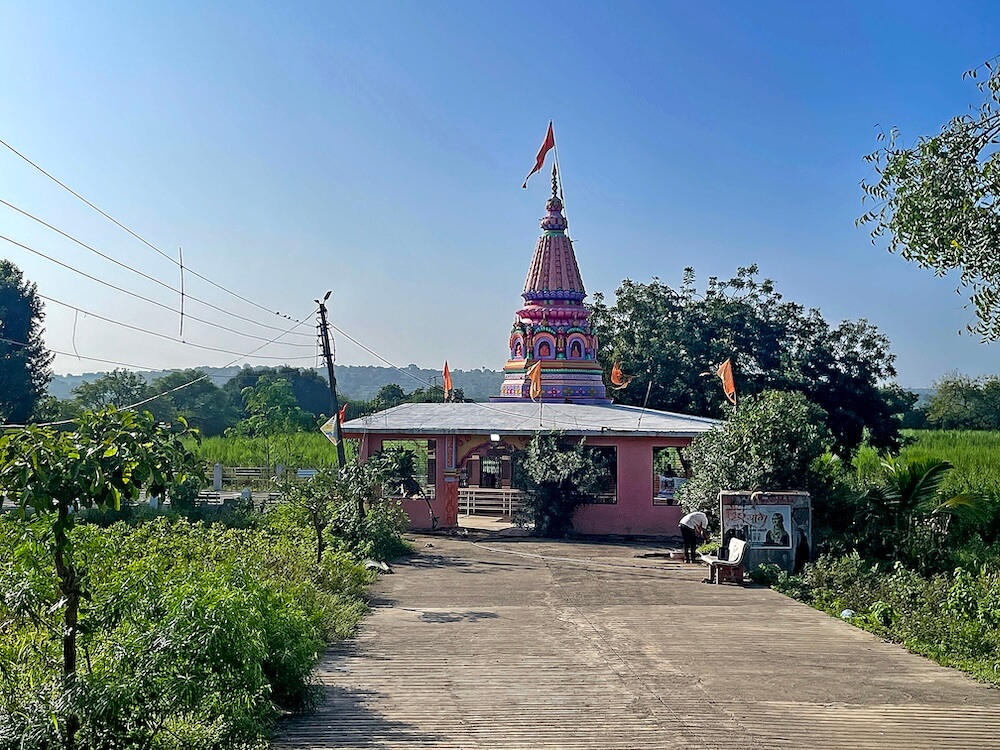 गावाच्या शिवेवर मुख्य रस्त्यालगत नदीच्या तीरावर हे मंदिर उभे आहे. मंदिराभोवती सिमेंटच्या स्तंभिका व त्यात स्टेनलेस स्टीलच्या नळ्या लावून तटबंदी तयार करण्यात आली आहे. तटबंदीत स्वागतकमान आहे.