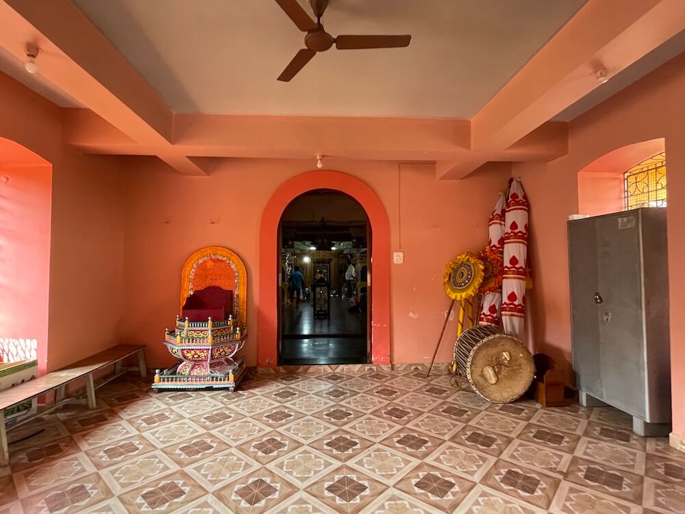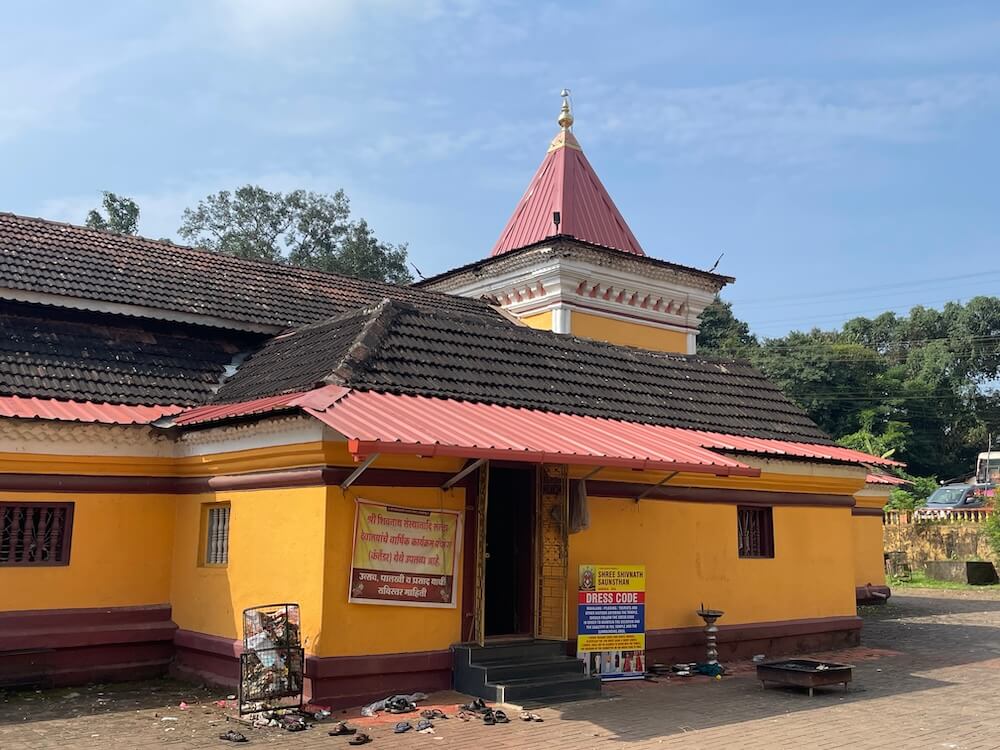 या मंदिराचा परिसर मोठा आहे. मंदिरासमोर एक पुष्करणी आहे. मुखमंडप, अर्धखुल्या स्वरूपाचा सभामंडप, बंदिस्त महामंडप आणि गर्भगृह अशी मंदिराची रचना आहे. सभामंडपात मध्यभागी कासवमूर्ती आहे. अन्य मंदिरांमध्ये जमिनीवर स्थापन केली जाणारी कासवमूर्ती येथे मात्र एका गोलाकार उंच पिठावर स्थापित आहे. सभामंडपातून चार पायऱ्या चढून काहीशा उंचावर असलेल्या दुमजली अर्धमंडपात प्रवेश होतो. येथे देवाच्या उत्सवाच्या वेळी लागणाऱ्या पालखीसह इतर साधने ठेवलेली आहेत. येथून पुढे महामंडप आहे. १९७२ मध्ये या मंदिराचा जिर्णोद्धार झाला असला तरीही महामंडपातील लाकडी छत व येथील प्राचीन काष्ठशिल्प कायम ठेवण्यात आलेले आहेत. या काष्ठशिल्पांमध्ये अनेक देवदेवता आहेत. त्याचबरोबर कृष्णलीला तसेच रामायणातील विविध प्रसंगही साकारण्यात आलेले आहेत. महामंडपात मध्यभागी काचेच्या उंच पेटीमध्ये मोठी पितळी समई आहे. गर्भगृहासमोर एका कमी उंचीच्या चौथऱ्यावर नंदी स्थापित आहे. गर्भगृहाच्या दर्शनी भिंतीवर लाकडाचे कोरीव काम आहे. दुहेरी द्वारशाखा असलेल्या गर्भगृहाच्या प्रवेशद्वाराच्या दोन्ही बाजुला द्वारपाल मूर्ती व कोरीव नंदी आहेत. प्रवेशद्वाराच्या ललाटबिंबस्थानी शंकर पार्वतीसोबत बालगणपती आणि बालकार्तिकेय (शिवपरिवार) एकत्रित कोरलेले आहेत. गर्भगृहात जमिनीलगत शिवनाथ महादेवाची पिंडी आहे. पिंडीच्या मागील भिंतीवरील देवकोष्टकात शिवनाथांची मूर्ती आहे. येथील गर्भगृहावर चौकोनी व त्यावर त्रिकोणी आकाराचे शिखर आहे. या शिखराच्या अग्रभागी आमलक व कळस आहे.