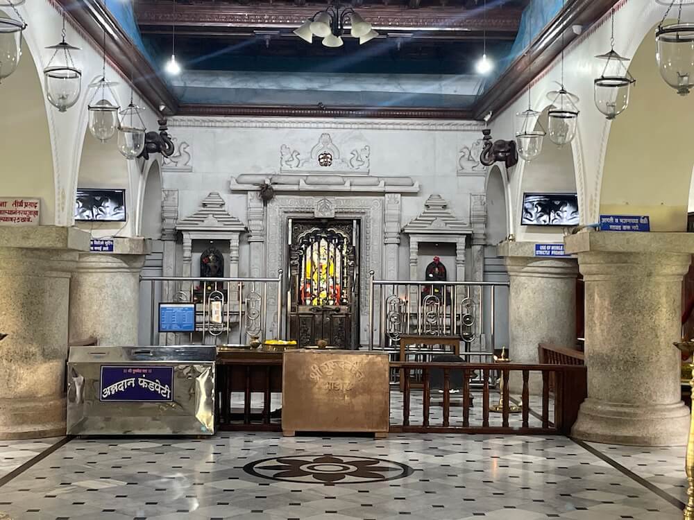 गर्भगृहाच्या दर्शनीभिंतीवरील देवळ्यांत गणेश आणि शंकराची मूर्ती आहे. गर्भगृहाचे प्रवेशद्वार कोरीव नक्षीकामाने सुशोभित आहे. द्वारस्तंभांच्या खालच्या बाजूला द्वारपालांच्या मूर्ती कोरलेल्या आहेत, तर ललाटबिंबस्थानी गणेशाची मूर्ती आहे. त्यावरील भागात कीर्तिमुख आहे. आत उंच चौथऱ्यावर संगमरवरी पाषाणात घडवलेली त्रिमुखी दत्तात्रेयाची मूर्ती विराजमान आहे. या मंदिराची शिखरे वैशिष्ट्यपूर्ण आहेत. येथे अर्धमंडपास डावीकडील आणि उजवीकडील प्रवेशद्वारावर मुखमंडप आहे. त्यावर चारहा दिशांनी उतरत्या छपराचे मोठे शिखर आहे. मंदिराच्या गर्भगृहावर त्रिस्तरीय चौकोनाकार इमारतीसारखी शिखररचना आहे. त्यावर चारही दिशांनी उतरते कौलारू छप्पर व त्यावर कलश आहे. मंदिराच्या मागच्या बाजूस औदुंबराचा मोठा पार बांधलेला आहे.