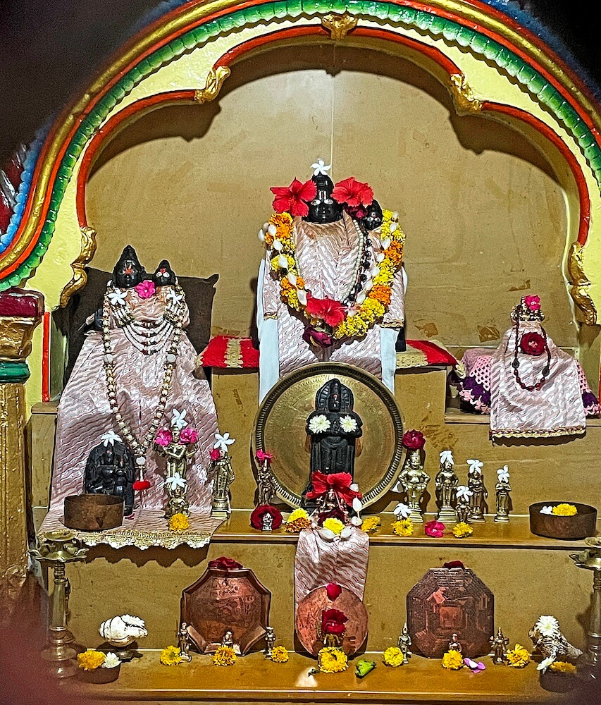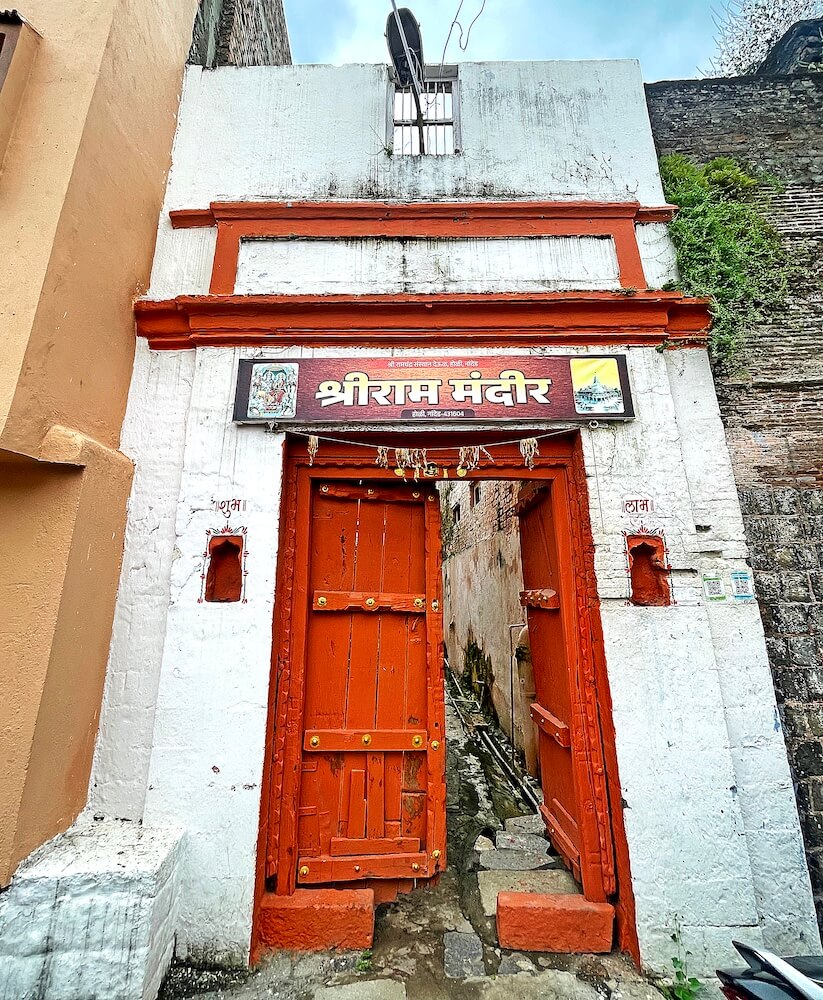 सभामंडपाच्या प्रवेशद्वारासमोर असलेल्या चौथऱ्यापुढे मुख्य गर्भगृह आहे. गर्भगृहाच्या प्रवेशद्वारास उभ्या धारेची नक्षी असलेल्या लाकडी द्वारशाखा व स्तंभशाखा आहेत. त्यांवर महिरप व पुष्पनक्षी आहे. ललाटबिंबावर गणपतीची मूर्ती आहे. प्रवेशद्वारास नक्षीदार लाकडी झडपा आहेत. गर्भगृहात वज्रपीठावर श्रीराम, लक्ष्मण, जानकी व मारूती यांच्या पाषाणी व पितळी मूर्ती आहेत. वज्रपीठावर इतर काही देवतांच्या धातूच्या मूर्ती व मुखवटे देखील आहेत. वज्रपीठाच्या दोन्ही बाजूस दोन नक्षीदार स्तंभ असून त्यांवर महिरपी कमान आहे. गर्भगृहाच्या सभोवती प्रदक्षिणा मार्ग आहे. या प्रदक्षिणा मार्गावरील भिंतींत दीपकोष्ठके आहेत.