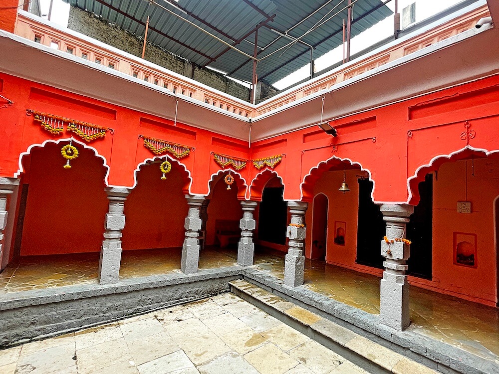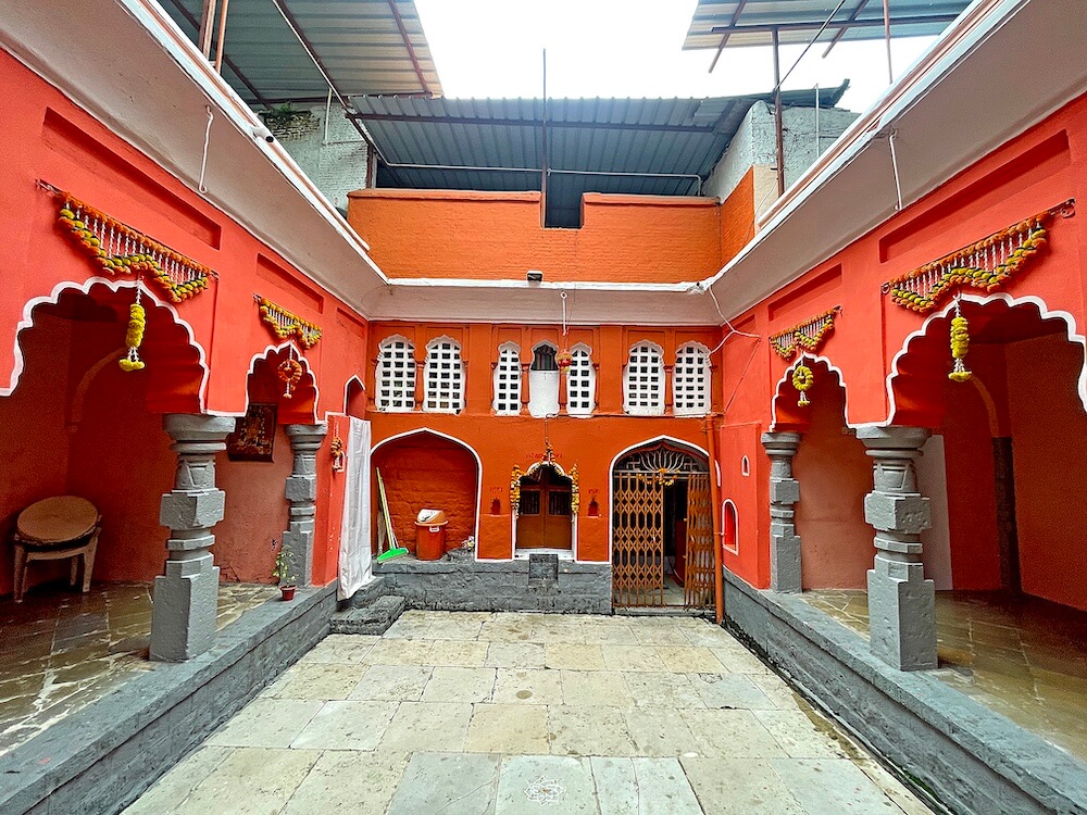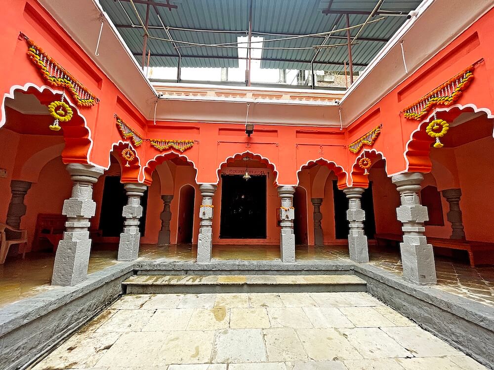 प्राचीन बांधणीच्या या वाड्यास असलेल्या भक्कम तटबंदीत मंदिराचे प्रवेशद्वार आहे. प्रवेशद्वाराच्या दोन्ही बाजूला दीपकोष्ठके आहेत. प्रवेशद्वारास लाकडी द्वारशाखा व मजबूत झडपा आहेत. प्रवेशद्वारातून पुढे आल्यावर अरुंद पायवाटेच्या दोन्ही बाजूला वाड्यातील कक्षांच्या मागील भिंती आहेत. पुढे दुसरे प्रवेशद्वार आहे. या प्रवेशद्वाराच्या दोन्ही बाजूला देखील दीपकोष्ठके आहेत. या प्रवेशद्वारालाही लाकडी द्वारशाखा व झडपा आहेत. येथून काही पावलांवर मंदिराचा सभामंडप आहे. सभामंडपात प्रवेशद्वार सोडून सभोवार चौथरे आहेत. चौथऱ्यावर समोरील बाजूस लाकडी स्तंभ आहेत. स्तंभांचा खालील भाग चौकोनी आणि वरील भागावर षटकोन, अष्टकोन, वर्तुळ असे विविध भौमितिक आकार आहेत. स्तंभांच्या शीर्षभागी कणी व त्यांवर महिरपी कमानी आहेत. कमानीवर वरील मजल्याचा सज्जा आहे. सभामंडपात डावीकडे लहान गर्भगृह आहे. येथील वज्रपीठावर दास हनुमानाची काळ्या पाषाणातील मूर्ती आहे. सभामंडपातील देवकोष्टकांत सरदेशपांडे यांच्या पूर्वजांच्या तसबिरी आहेत.