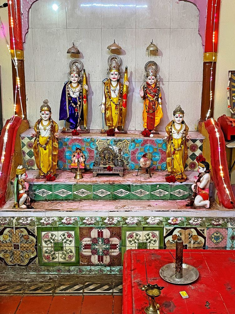 भांबेरी गावाच्या मध्यवर्ती ठिकाणी रस्त्यालगत हे मंदिर आहे. एखाद्या जुन्या वाड्याप्रमाणे या मंदिराचे बांधकाम आहे. प्रशस्त सभामंडप व तीन गर्भगृहे अशी या मंदिराची संरचना आहे. बंदिस्त सभामंडपातील सर्व स्तंभ एकमेकांशी महिरपी कमानीने जोडलेले आहेत. सभामंडपातील भिंतीवर भाऊसाहेब महाराजांच्या जीवनचरित्रावर आधारित अनेक प्रतिमा आहेत. सभामंडपाच्या पुढे लाकडी रेलींग व त्यापुढे तीन गर्भगृहे आहेत. त्यापैकी मध्यभागी असलेल्या मुख्य गर्भगृहात तीन थरांच्या वज्रपिठावर वरील बाजूस श्रीराम, लक्ष्मण व सीता यांच्या शुभ्र संगमरवरी मूर्ती आहेत. श्रीराम व लक्ष्मणाच्या हातांत धनुष्यबाण, सर्व मूर्तींच्या डोक्यावर मुकूट व त्यावर छत्रे आहेत. वज्रपिठाच्या मधल्या स्तरावर भरत व शत्रुघ्न यांच्या संगमरवरी मूर्ती आहेत. या दोन मूर्तींच्या मध्यभागी श्रीराम, लक्ष्मण व सीता यांच्या पितळी उत्सवमूर्ती आहेत. वज्रपिठाच्या खालच्या स्तरावर हनुमान व गरूड यांच्या संगमरवरी मूर्ती आहेत. डावीकडील गर्भगृहात राधा-कृष्णाच्या संगमरवरी मूर्ती व उजवीकडील गर्भगृहात चतुर्मुखी शिवलिंग आणि त्यासमोर नंदी विराजमान आहे. शिवलिंगाच्या मागील बाजूकडील भिंतीनजीकच्या मखरात पार्वतीमातेचे स्थान आहे. या मखराच्या डावीकडे गणेशाची तर उजवीकडे वीरभद्राची मूर्ती आहे.