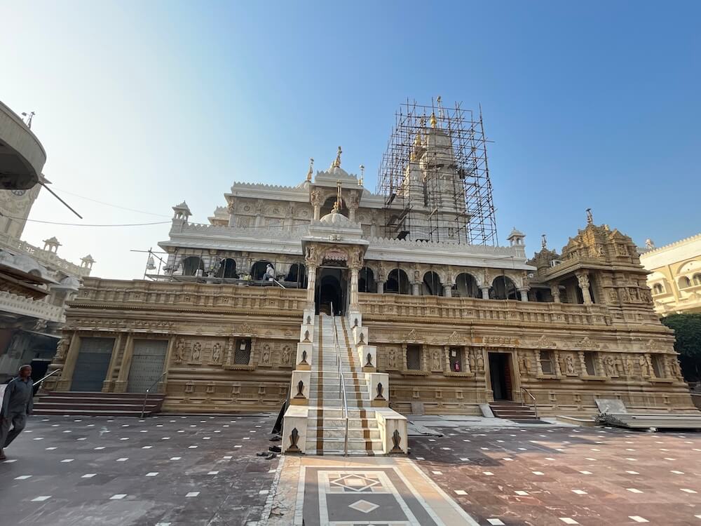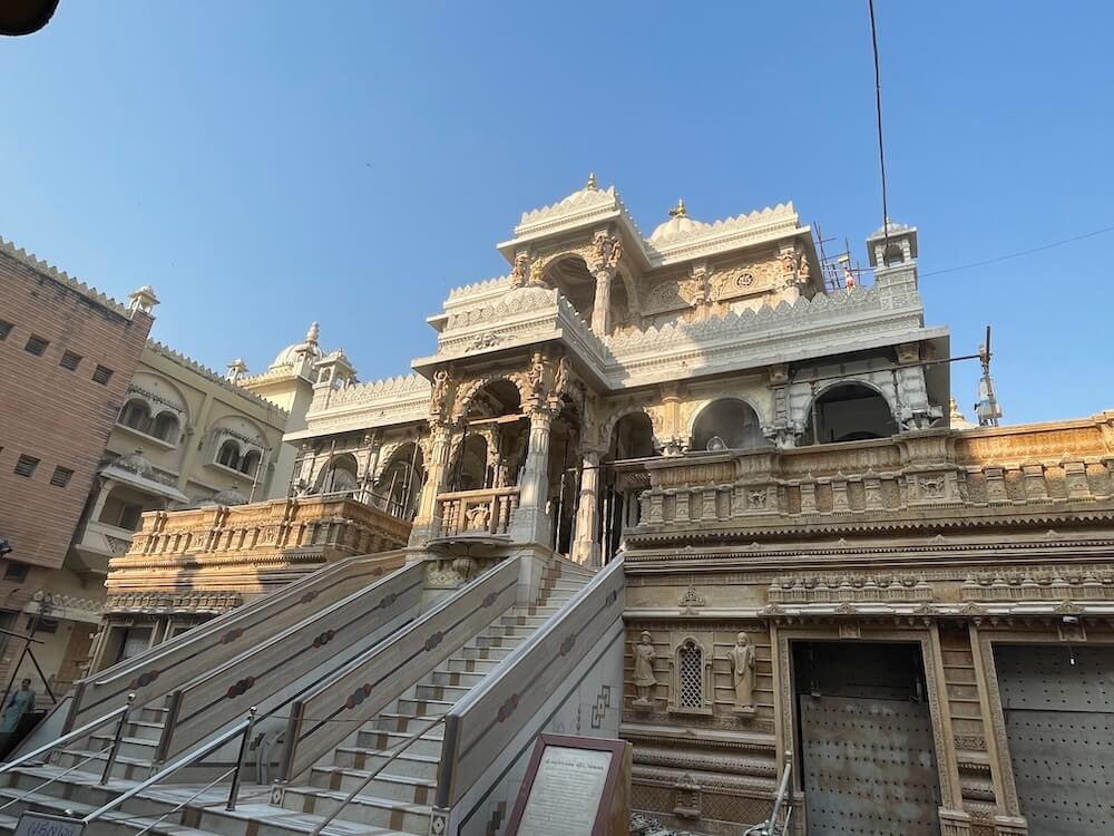 The architectural style of the temple is considered an excellent specimen of the Nagara style of Indian architectur. This temple has been crafted using marble and the pink sandstone of Rajasthan. This temple, which is approximately a century and a quarter old, stands on hundreds of pillars and appears like a grand palace.