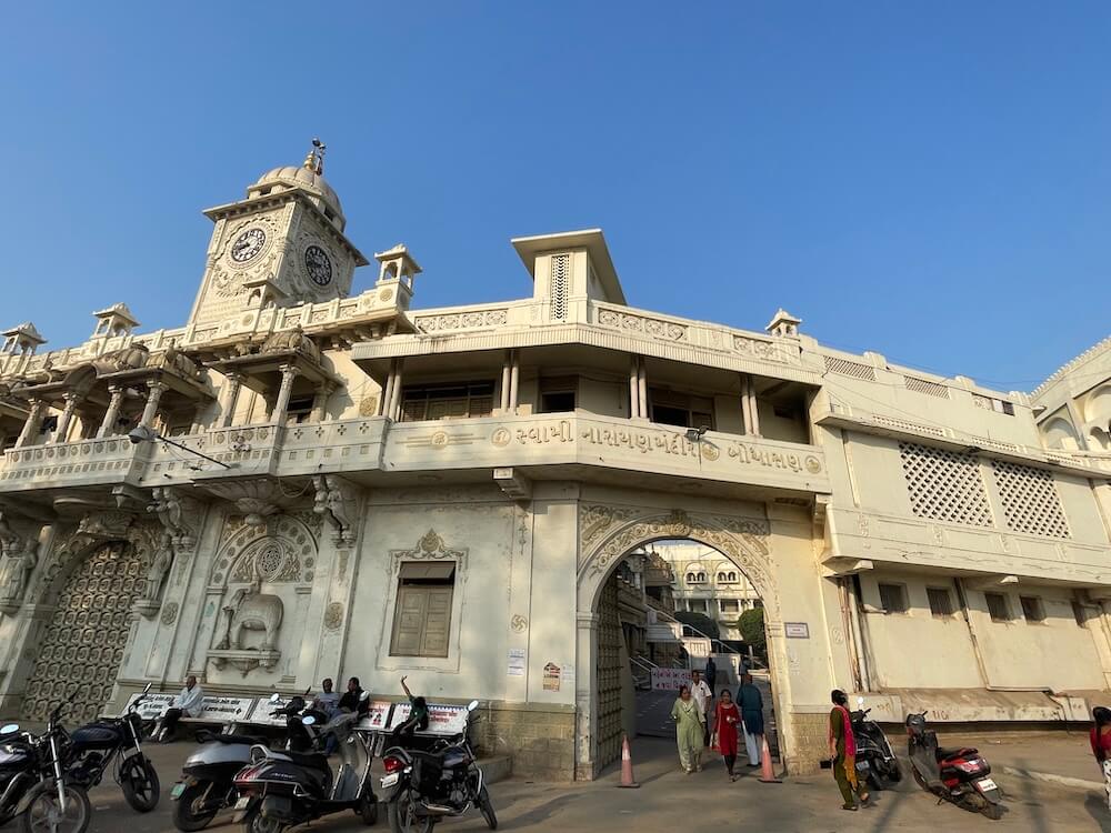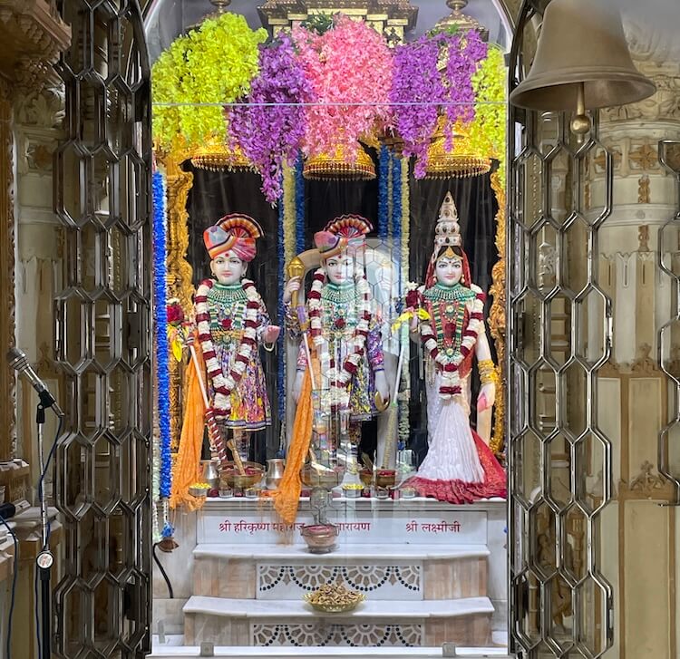 For the devotees coming for Darshan at the Swaminarayan Mandir, entry is permitted from 7.30 am to 12.00 pm and from 4.00 pm to 8.15 pm. The temple’s main gate remains closed for darshan between 12:00 PM and 4:00 PM for the deity’s rest and the offering of ‘Thal’ (food offering). Five aartis are performed daily in the temple. The schedule begins at 6:00 AM with the Mangala Aarti. This is followed by the Shringar Aarti at 7:30 AM and the Rajbhog Aarti at 11:15 AM. In the evening, the Sandhya Aarti is performed around 7:00 PM (depending on the sunset), and the final ritual of the day, the Shayan Aarti, takes place at 8:15 PM.
