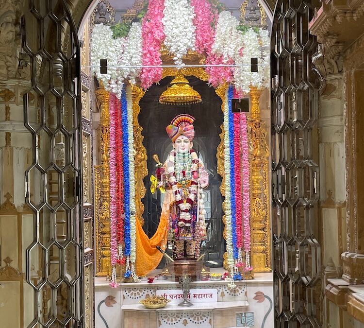 Many festivals and holy days are celebrated in the temple throughout the year in an extremely disciplined manner. Guru Purnima and Kartik Purnima are the main annual festivals here. On these occasions, thousands of devotees come here for Darshan (sacred viewing). On Guru Purnima, a special Puja and Aarti of the Gurus are performed. A special Deepotsav (festival of lights) is organised on Kartik Purnima. At this time, about a hundred thousand oil lamps are lit, illuminating the entire premises with light. The anniversary of the temple is called ‘Patotsav’ and on this day, the idols are anointed with sacred waters. On the day following Deepavali, a variety of food offerings, known as ‘Annakut’, are presented to the deity and through this, gratitude towards God is expressed. The Hindola festival is celebrated in the month of Ashadh. During this period, the deity is placed in various types of decorated cradles and swung. During festivals, the ceremonial reading,