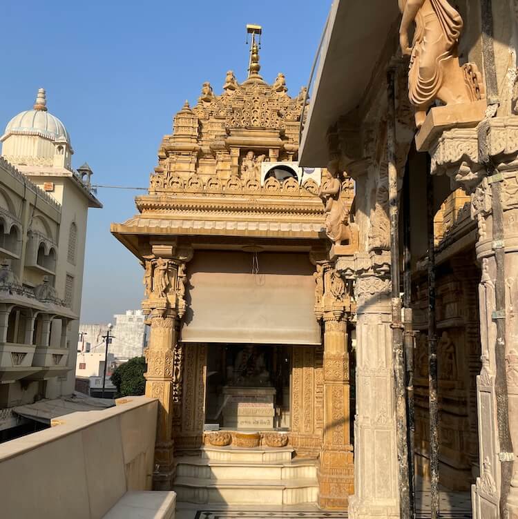 It was at this spot that Nilkanth Varni stayed during his first visit. There are tall Shikharas (spires) on the roof of the temple. There are Suvarnakalash (golden urns) upon the Amalaka (notched stone disk) of these spires.