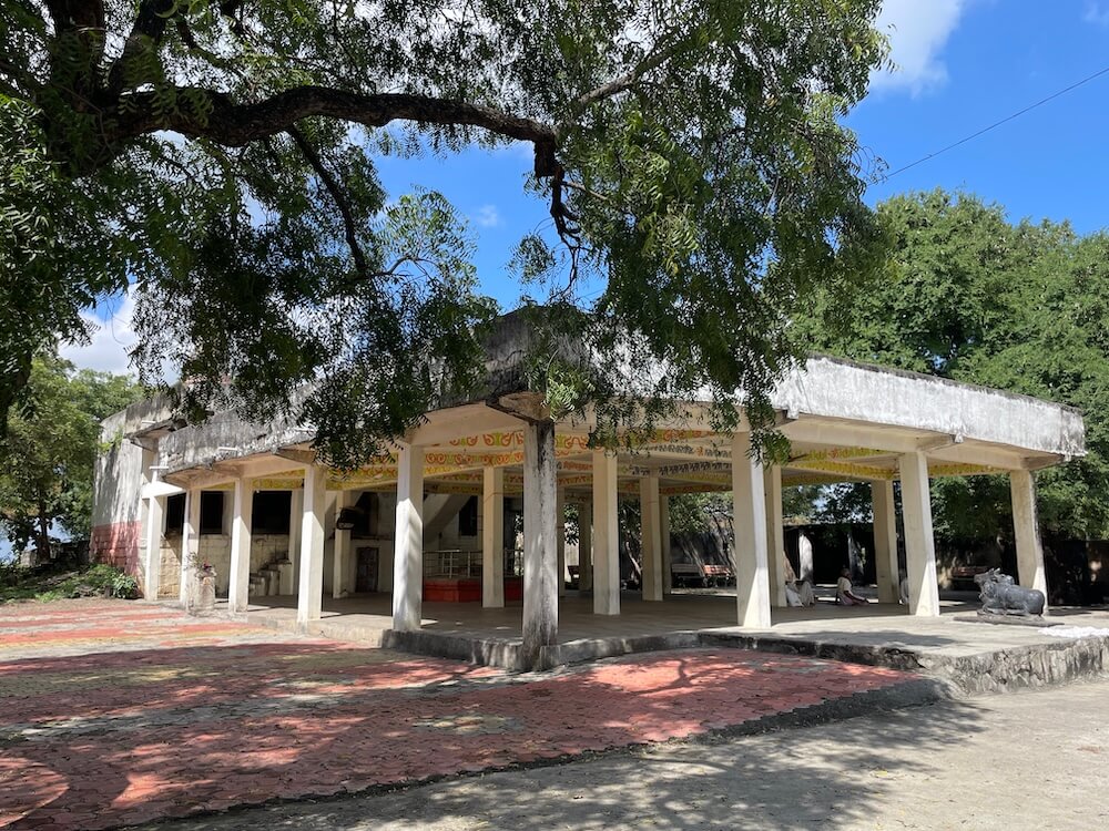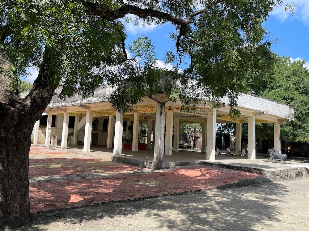 मंदिर गावापासून काही अंतरावर वसले आहे. मंदिरास भक्कम तटबंदी आहे, ज्यामध्ये साधेसे प्रवेशद्वार आहे. मंदिराच्या प्रशस्त प्रांगणात भाविकांना बसण्यासाठी आसने आहेत. दर्शनमंडप, अर्धमंडप, सभामंडप, अंतराळ व गर्भगृह अशी या मंदिराची संरचना आहे. दर्शनमंडपासमोर वज्रपीठावर नंदीची काळ्या पाषाणातील मूर्ती आहे. दर्शनमंडपाच्या डाव्या बाजूला तुळशी वृंदावन आहे. अर्धखुल्या स्वरूपाचा हा मंडप १९९४ मध्ये बांधण्यात आला. दर्शनमंडपात सहा-सहा चौकोनी स्तंभांच्या चार रांगा आहेत. छताला पितळी घंटा टांगलेल्या आहेत. तुळईवर पानाफुलांच्या नक्षी व वितानावर चक्राकार नक्षी आहे. दर्शनमंडपात मध्यभागी समाधीचा चौथरा आहे.