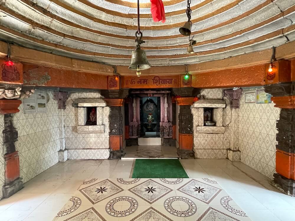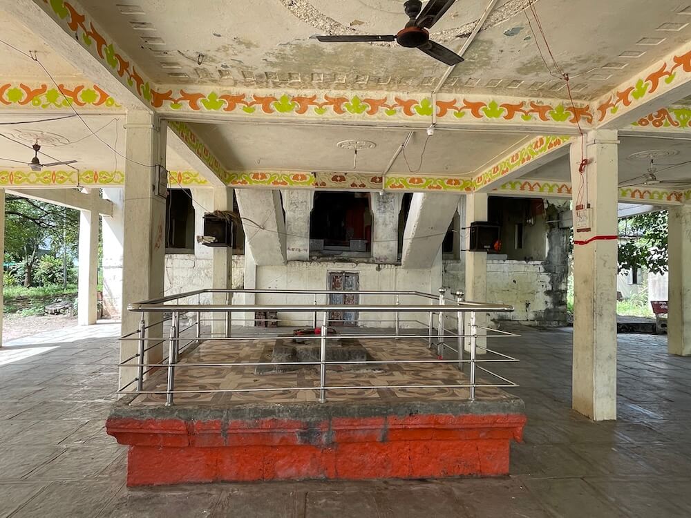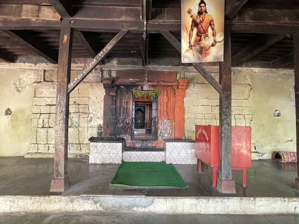 हनुमान आदी देवतांच्या मूर्ती आहेत. सभामंडपापुढे अरुंद अंतराळ आहे. अंतराळाच्या अष्टकोनी वितानावर मध्यभागी चक्राकार नक्षी आहे.