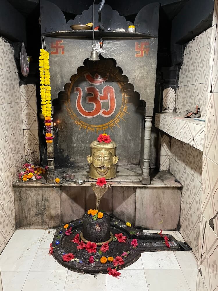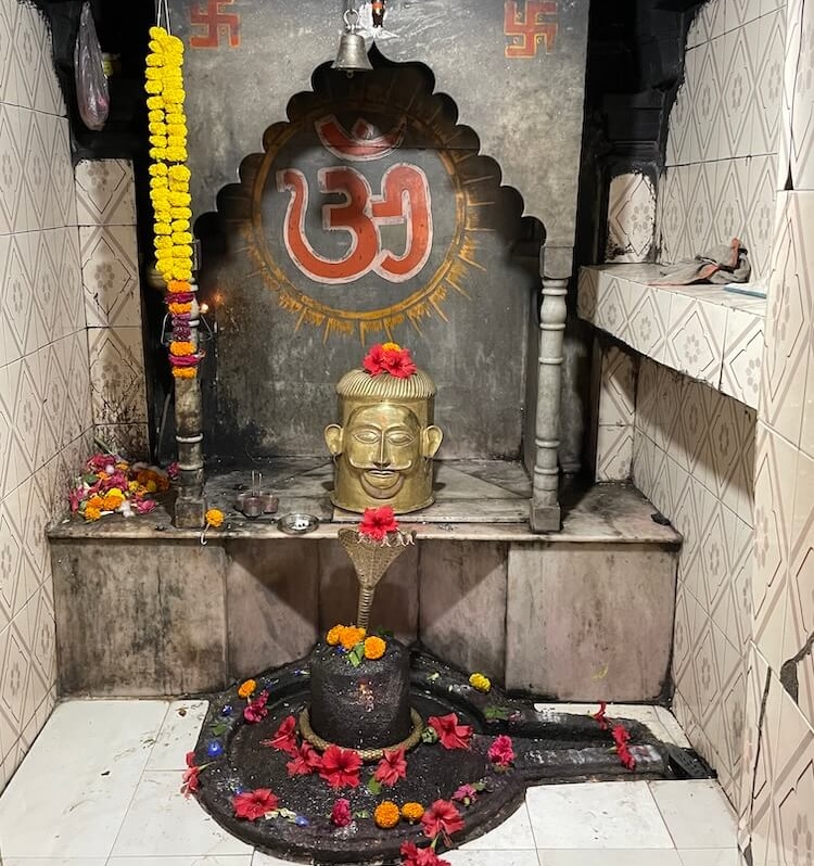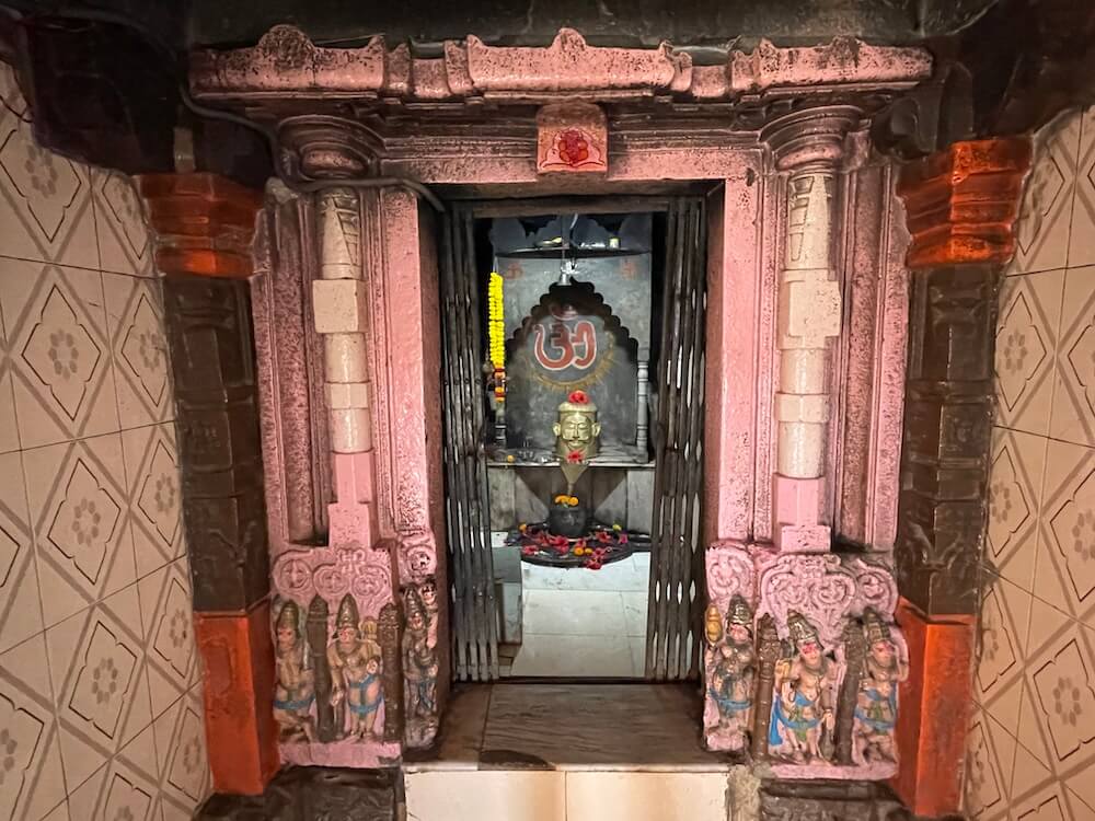 गर्भगृह अंतराळापेक्षा सुमारे एक फूट उंचावर आहे. गर्भगृहाच्या प्रवेशद्वारास पर्णशाखा, पुष्पशाखा व स्तंभशाखा अशा तीन द्वारशाखा आहेत. या द्वारशाखांच्या खालील बाजूस द्वारपाल, द्वारपालिका व गंगा-यमुना यांची शिल्पे आहेत. ललाटबिंबावर गणपती शिल्प आहे, तर उत्तरांगावर शिखरशिल्पांचे तोरण आहे. गर्भगृहात जमिनीवर मध्यभागी शिवपिंडी आहे. मागील भिंतीलगत वज्रपीठावरील मखरात महादेवाचा उत्सवकाळात वापरला जाणारा पितळी मुखवटा आहे.