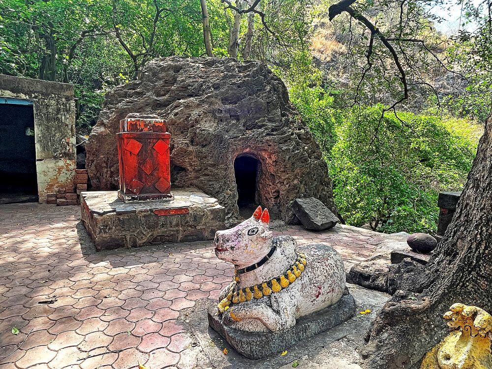 महाराजांची समाधी, गणपती, भैरव मूर्ती व शिवपिंडी आहेत.